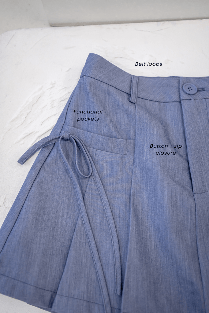Clare is a stylish and versatile piece of clothing which feature a classic pleated design that adds a touch of sophistication and movement. The skorts are designed with a tie-knot detail which enhances the chic appeal. The combination of pleats and the tie-knot detail creates a flattering silhouette, making Clare a great choice for both casual and dressed-up occasions!