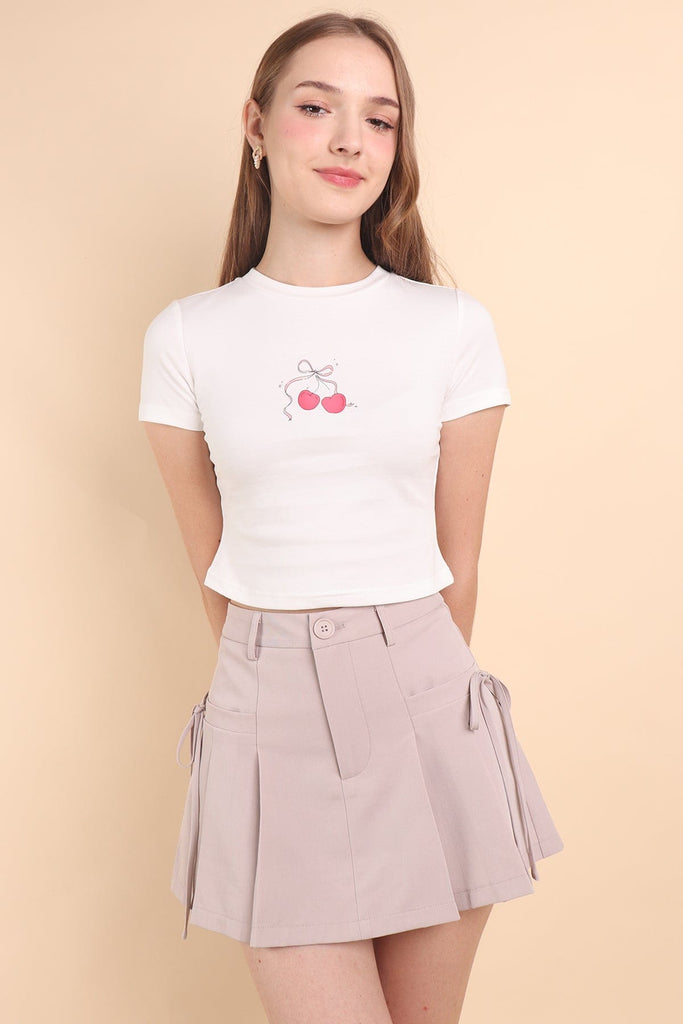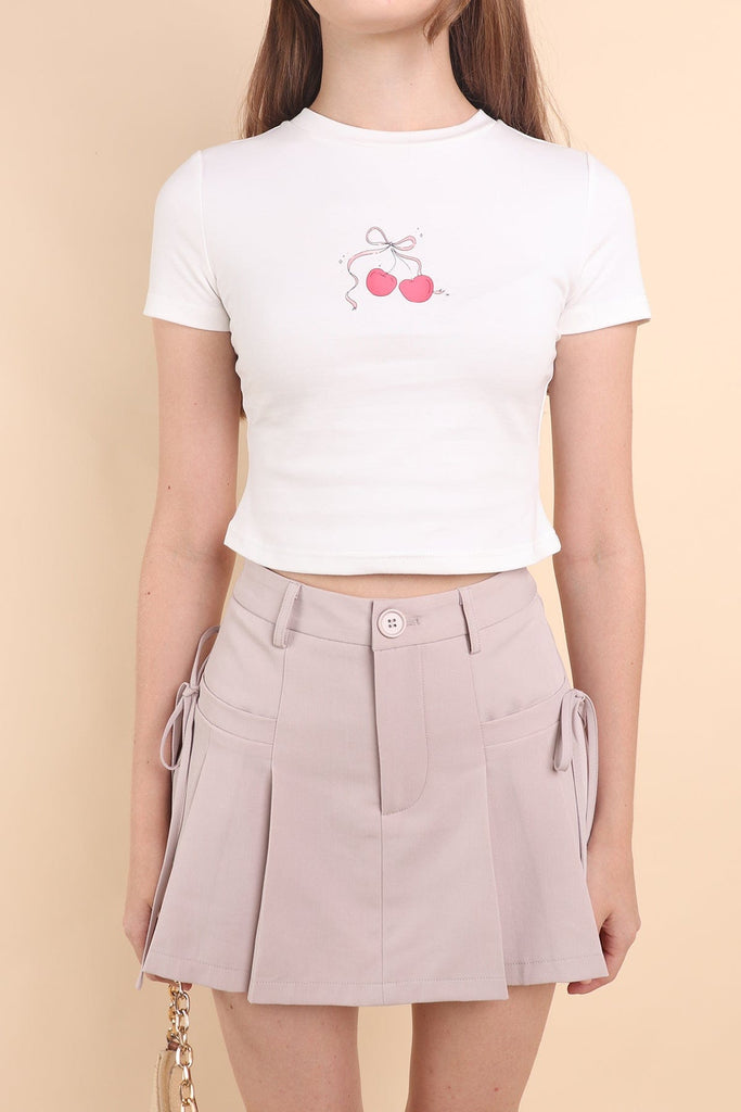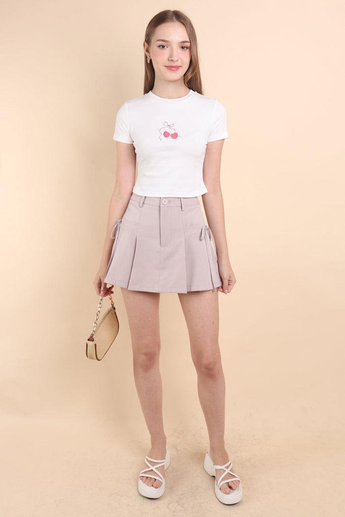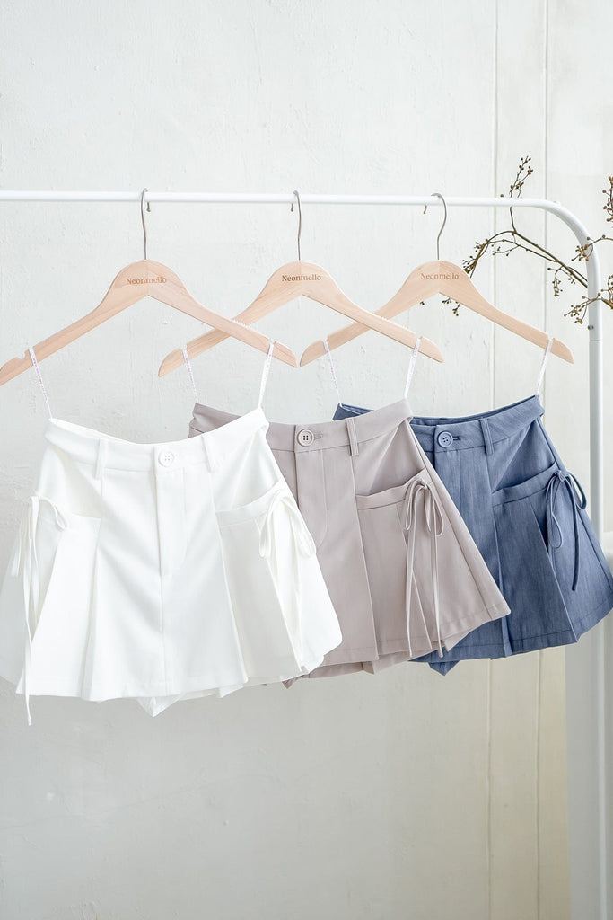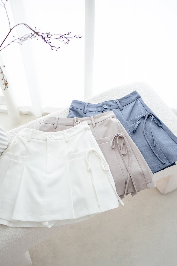 CLARE PLEATED TIE-KNOT SKORTS IN OAT ECRU