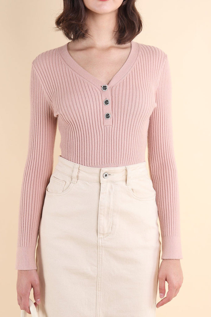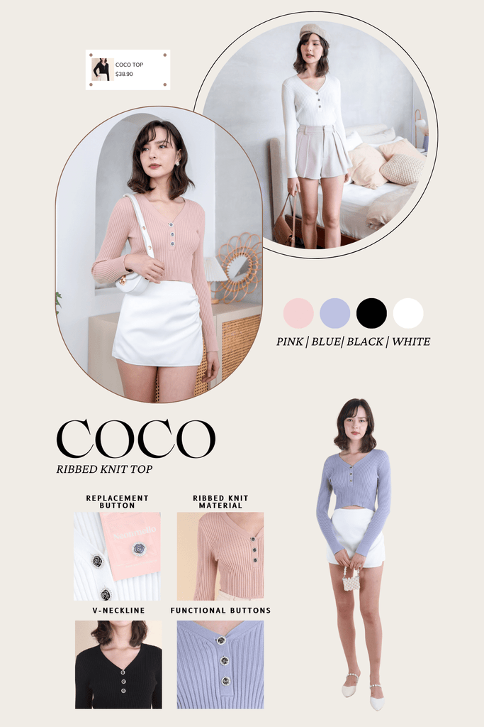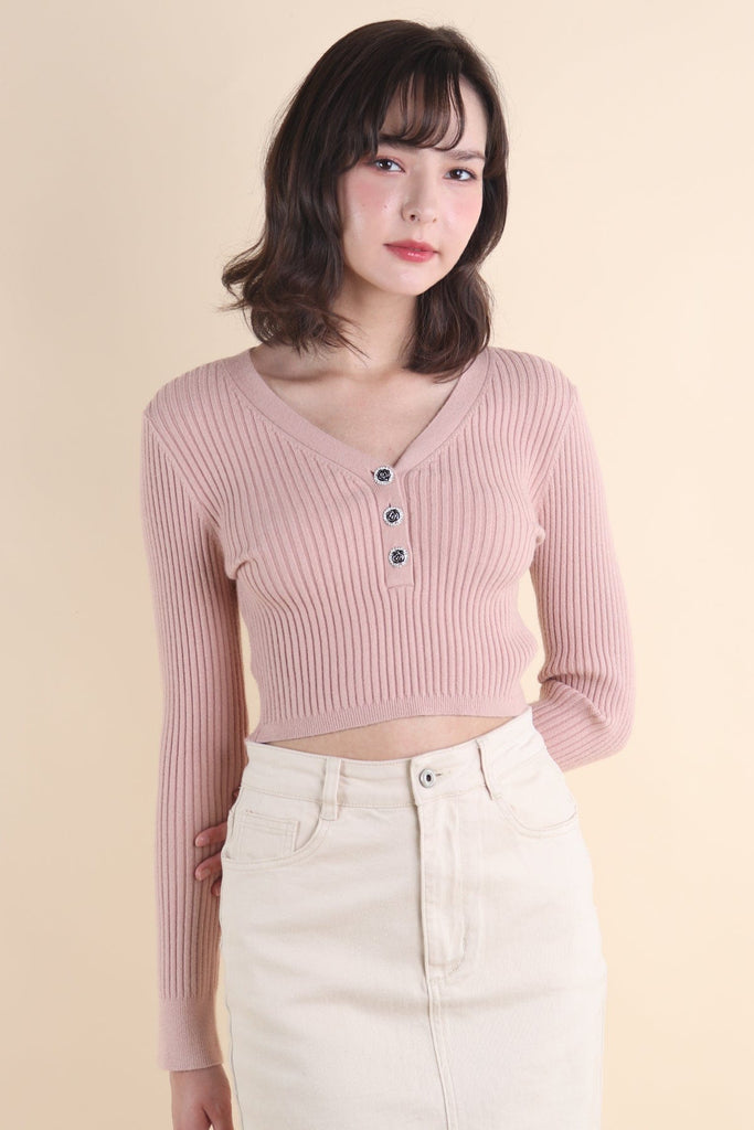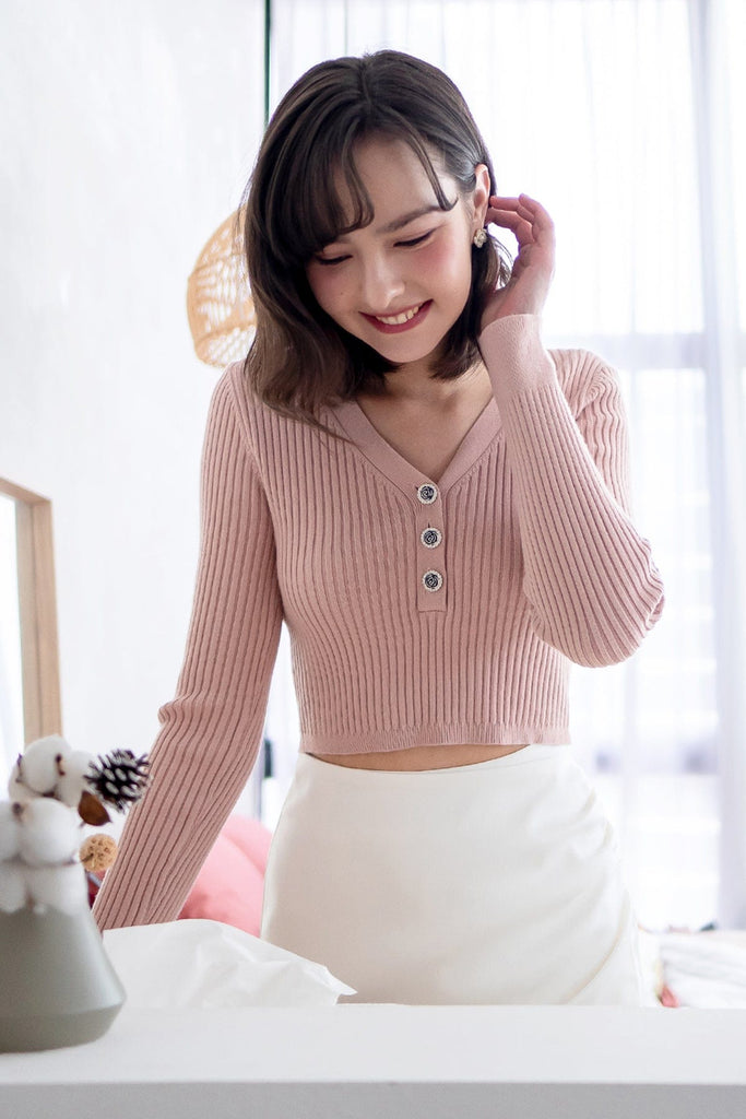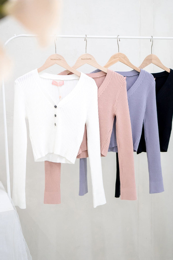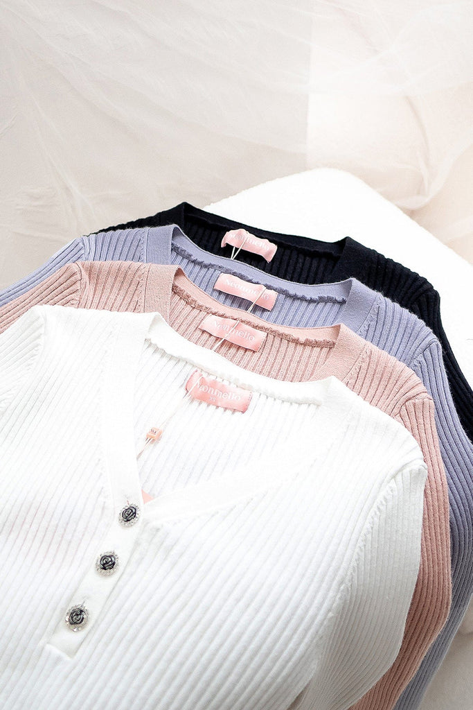 This knit top is a testament to comfort and style. Made to embrace your form, Coco hugs you gently while its long sleeves provide a touch of warmth~ Also comes with a flattering neckline that elongates the silhouette, adding a subtle allure to the look. Its gorgeous rose-shaped buttons that delicately trace the front makes this top a vision of elegance and refinement! Coco is a versatile piece that effortlessly elevates any outfit— causal chic or polished ⚘