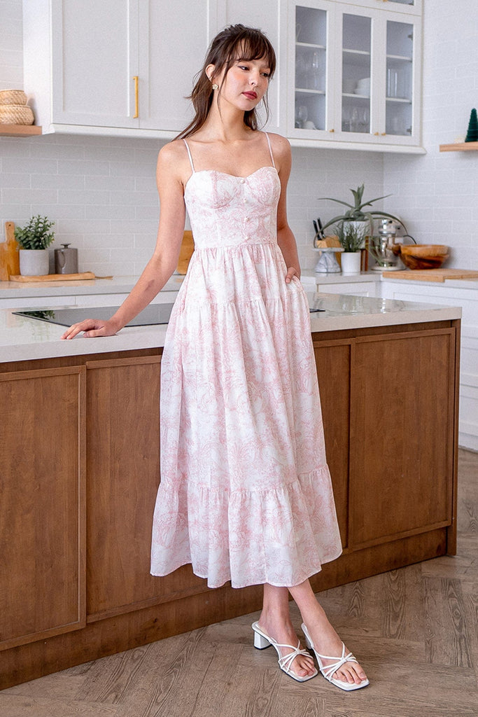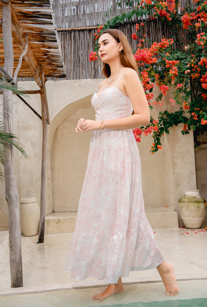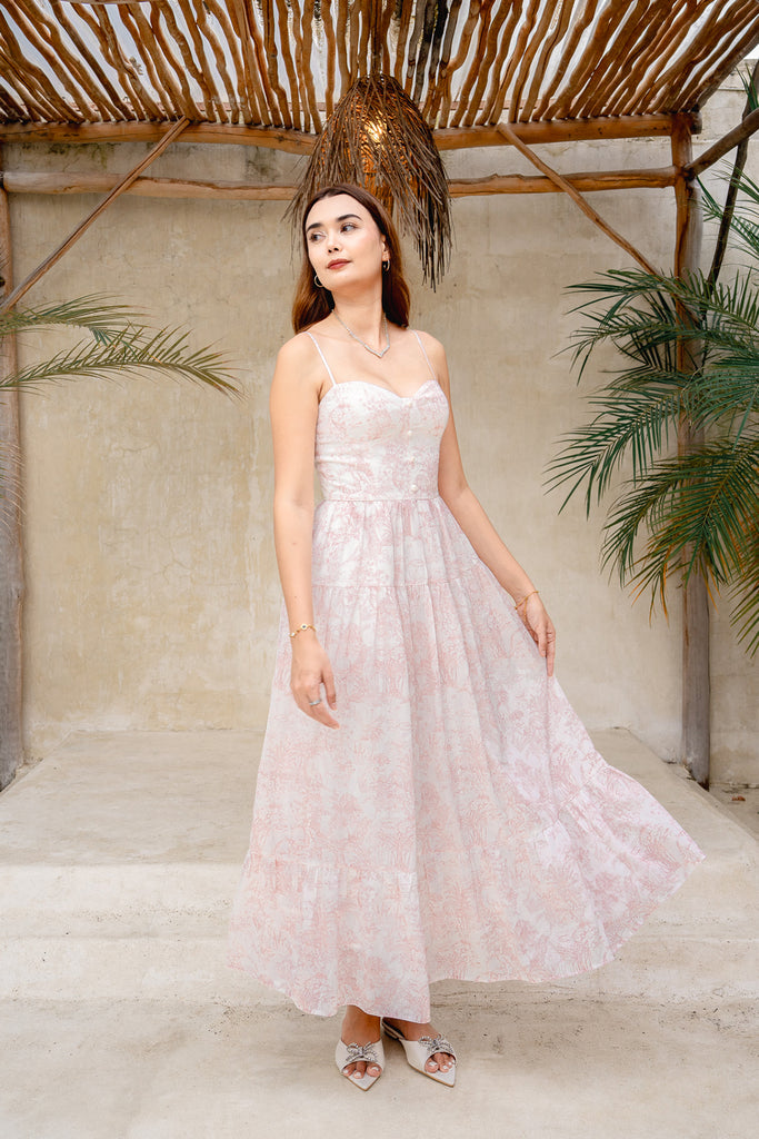 RESTOCKED**COLUMBIA TOILE PADDED MAXI IN PINK