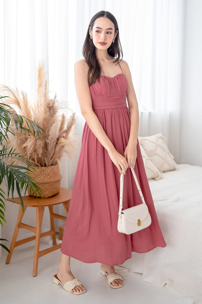 COSTALLO PADDED MAXI DRESS IN ROSE PINK