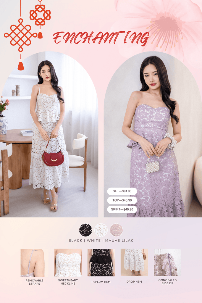 Combining intricate crochet detailing with a flattering padded top for a look that’s both glamorous and cozy. The flowing maxi skirt adds an ethereal touch, perfect for twirling at festive soirées or a candlelit dinner. This set captures the magic of the season, offering effortless elegance with a playful, yet refined, charm.