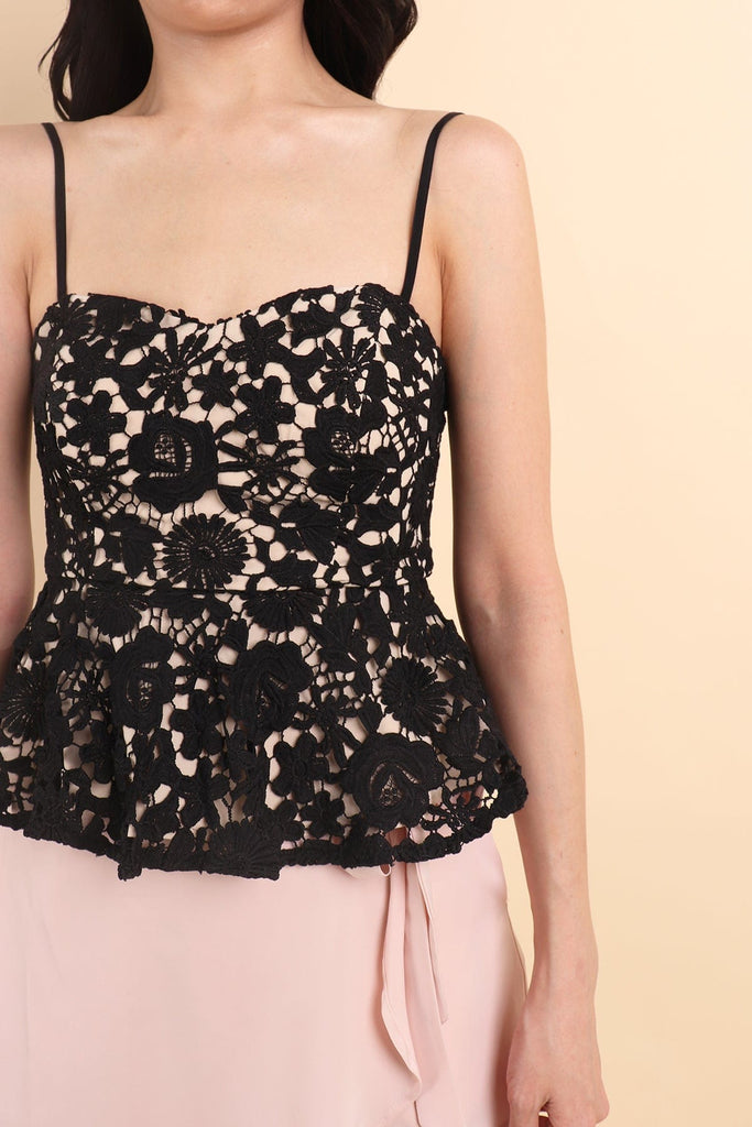 ENCHANTING CROCHET PADDED TOP IN BLACK