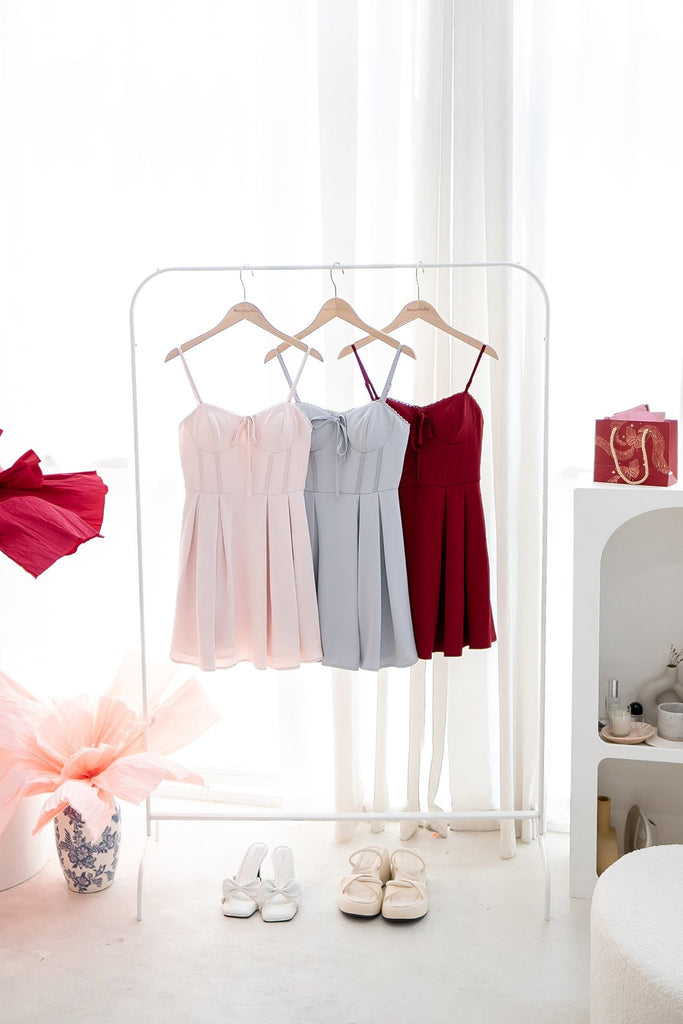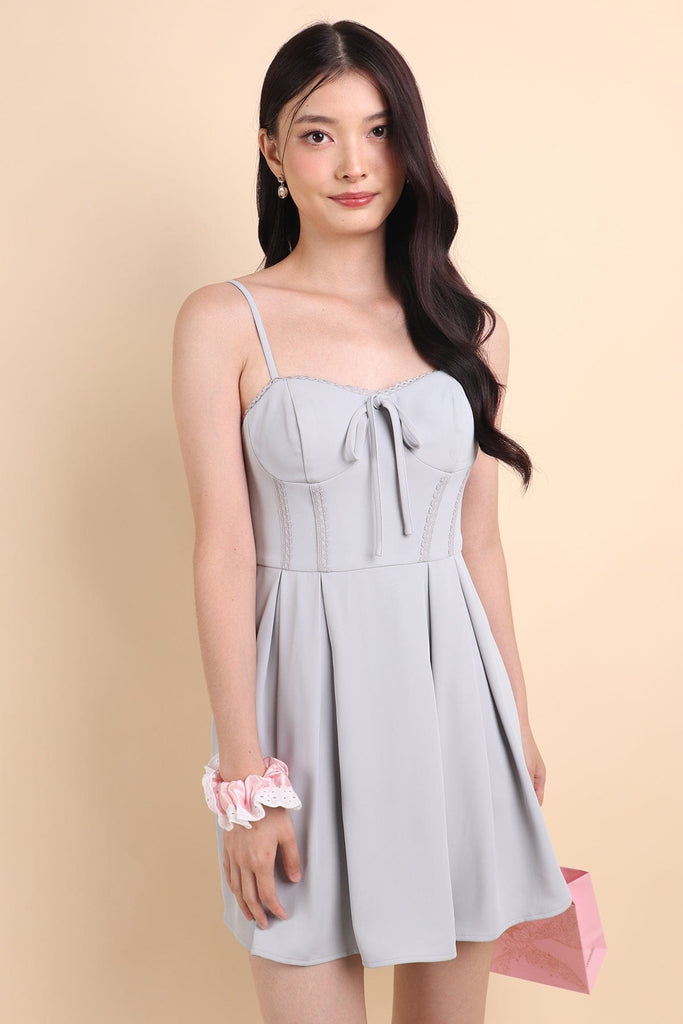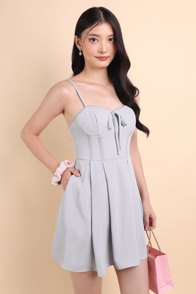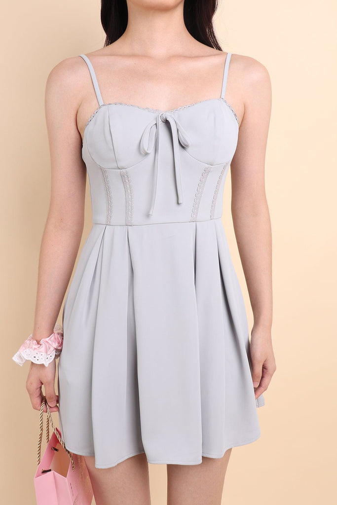 ESTEE PADDED LACE TRIMMING DRESS IN PERI GREY