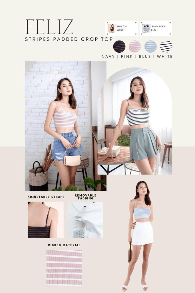 Add a touch of cute and fun to your outfits with Feliz! This cropped top is sleeveless and comes with removable paddings, making it a perfect and comfortable piece to reach out for any other day! A versatile one to own - wearable on its own and great for layering. Elevate your staple collection with Feliz!