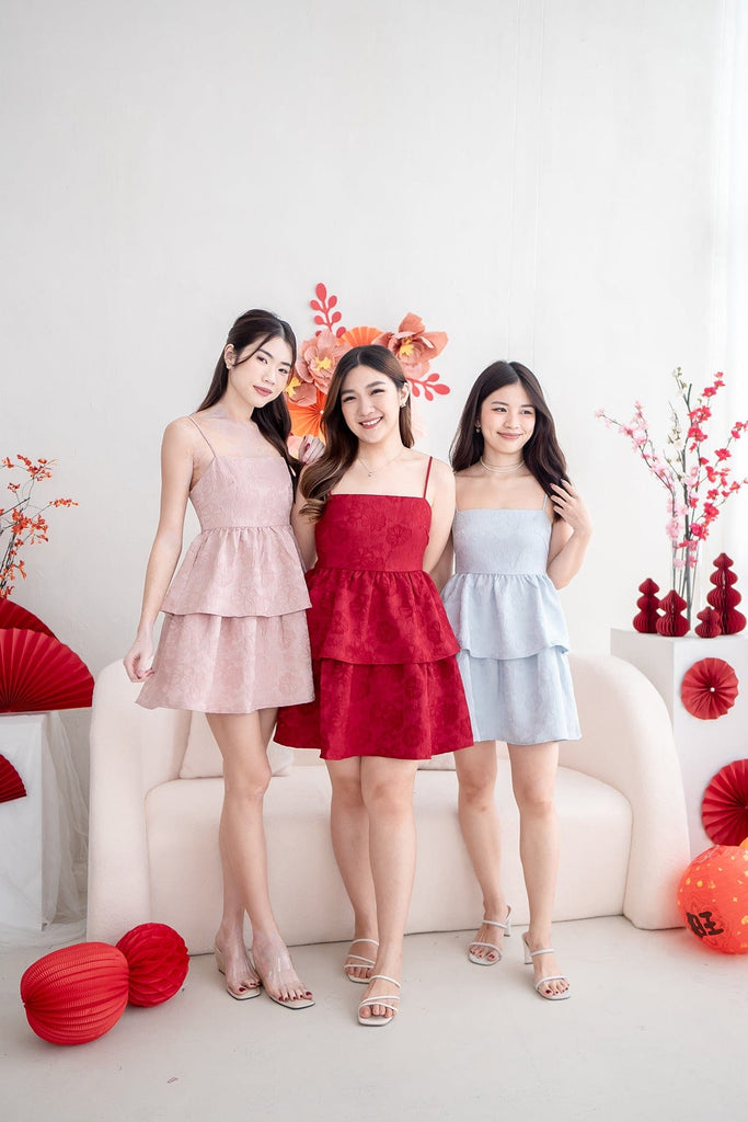 Feminine allure. Finch exudes timeless elegance with intricate patterns and delicate details, accompanied by a tiered bottom creating a volumed silhouette that captures attention with every step. Whether for the upcoming festive season or a stylish occasion, this dress is a stunning choice that effortlessly combines fashion and grace. Embrace a sense of refined beauty with Finch ✧