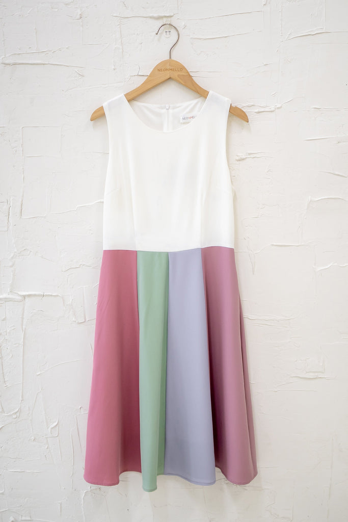 (FIRE DEAL) *COLOUR RUN* ELLIE MULTI PANEL MIDI DRESS IN WHITE