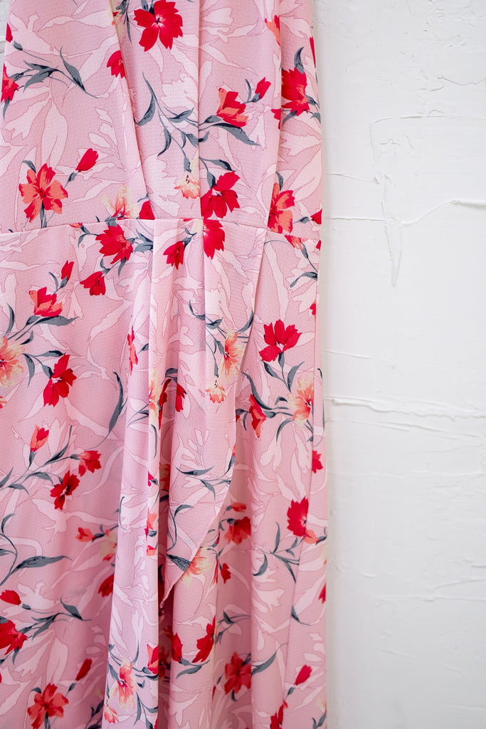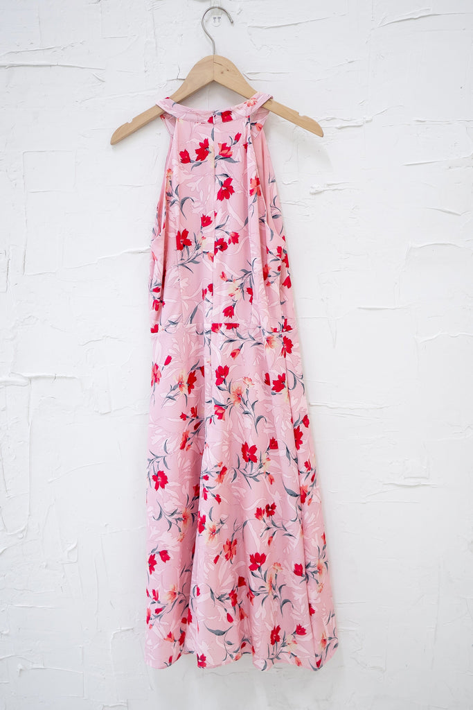 (FIRE DEAL) KAELIE FLORAL HALTER MIDI DRESS IN PINK
