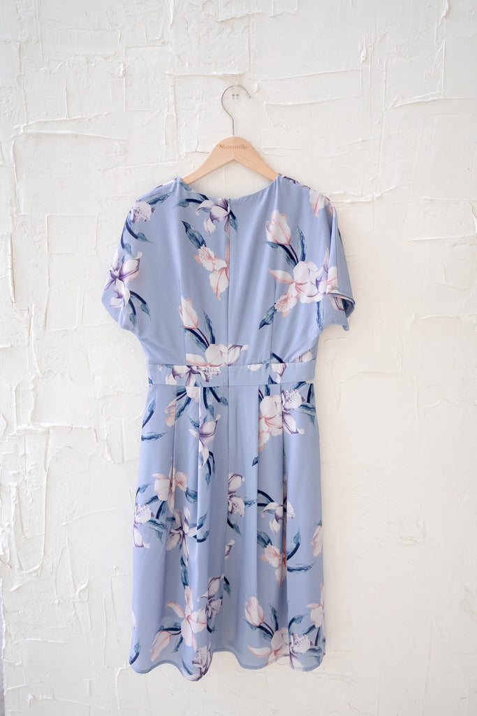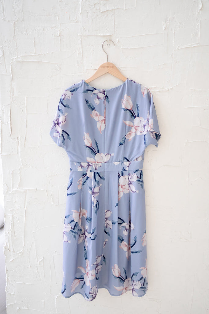 (FIRE DEAL) LIVIE SLEEVED FLORAL MIDI DRESS IN BLUE