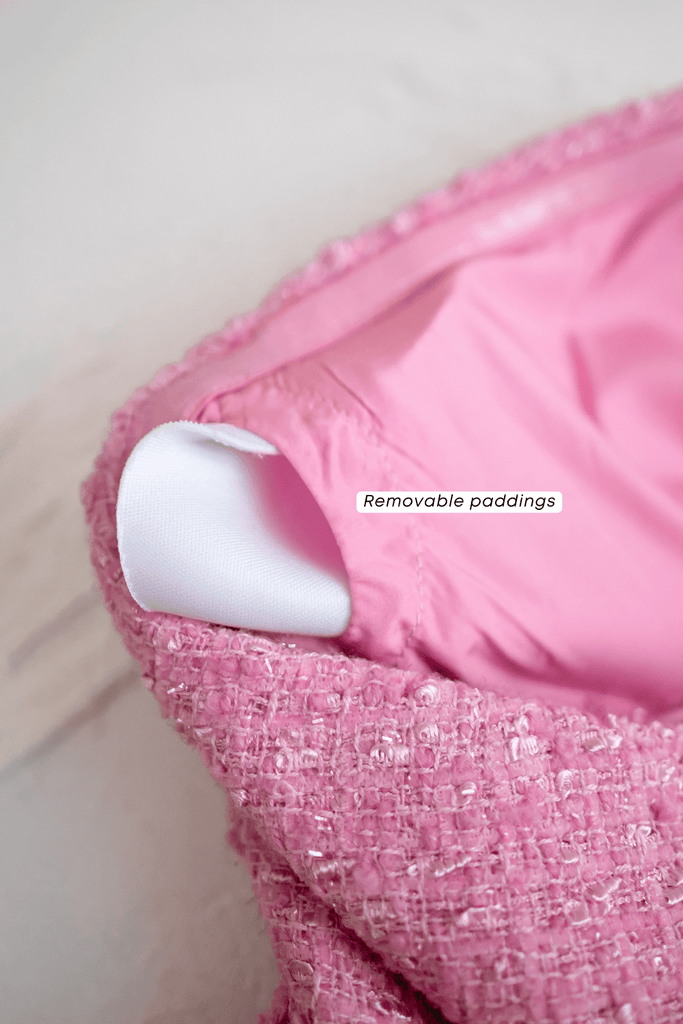 Crafted from a luxurious tweed fabric that elevates your every move. Its sleek, tailored silhouette hugs the body beautifully, while the elegant belt cinches the waist for a refined, flattering shape. Perfect for both daytime sophistication and evening allure, this dress effortlessly combines classic style with modern refinement.