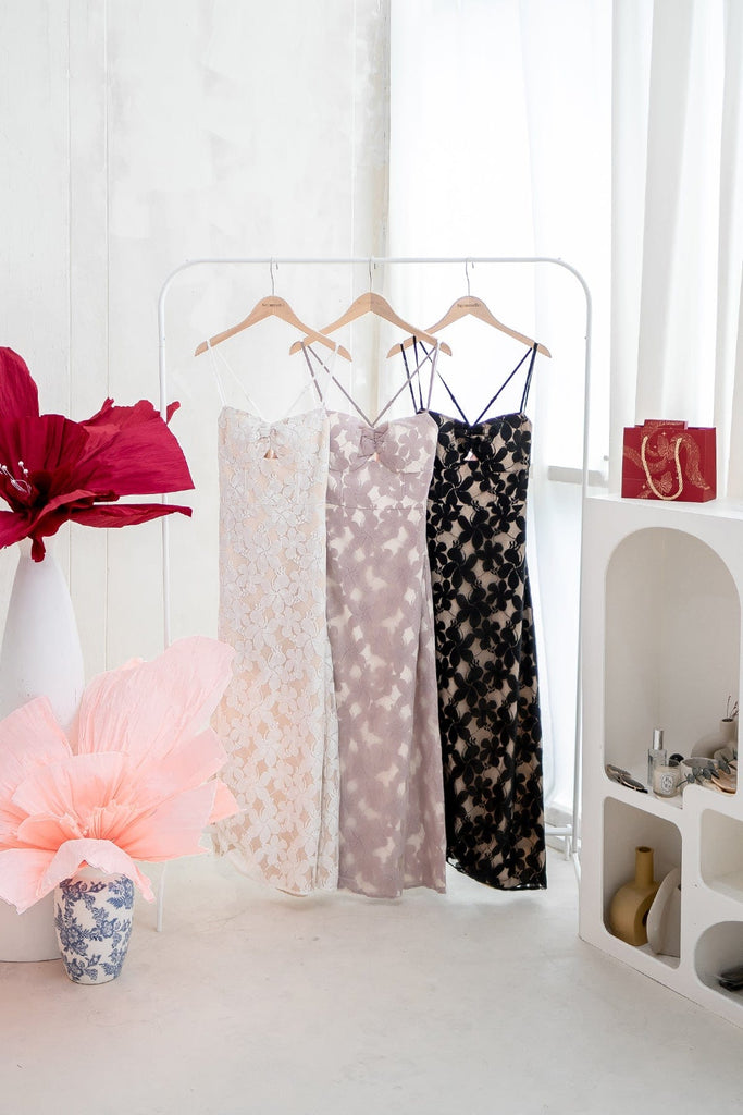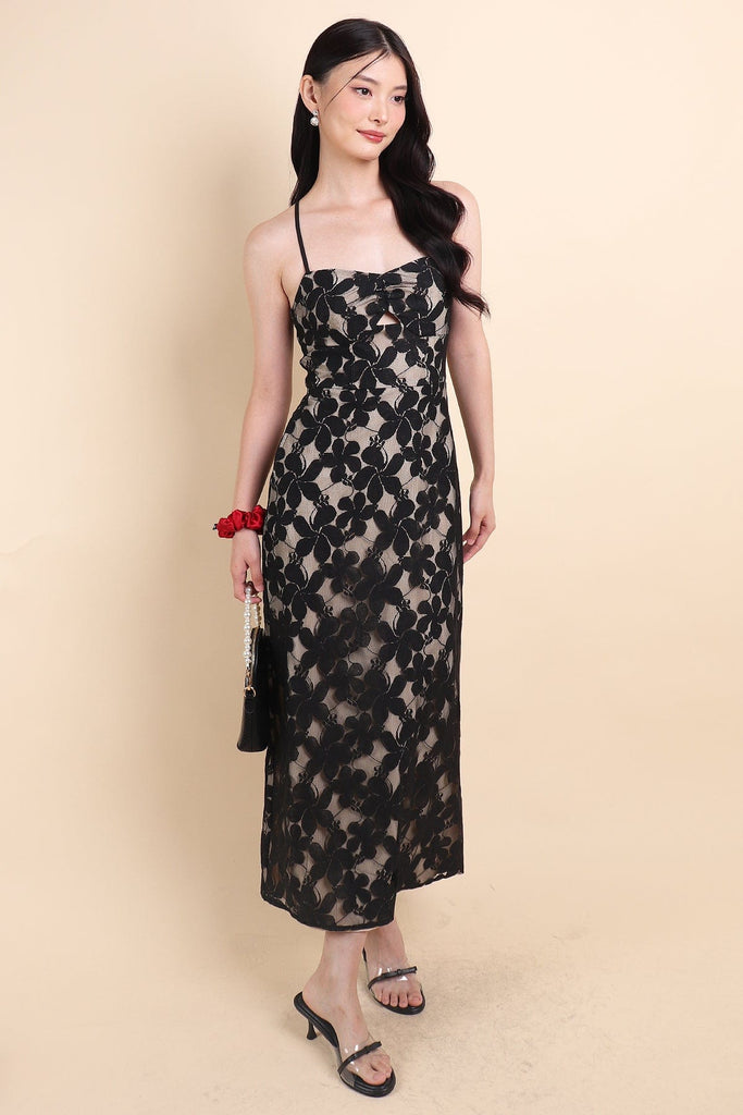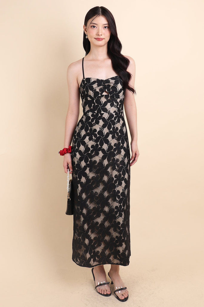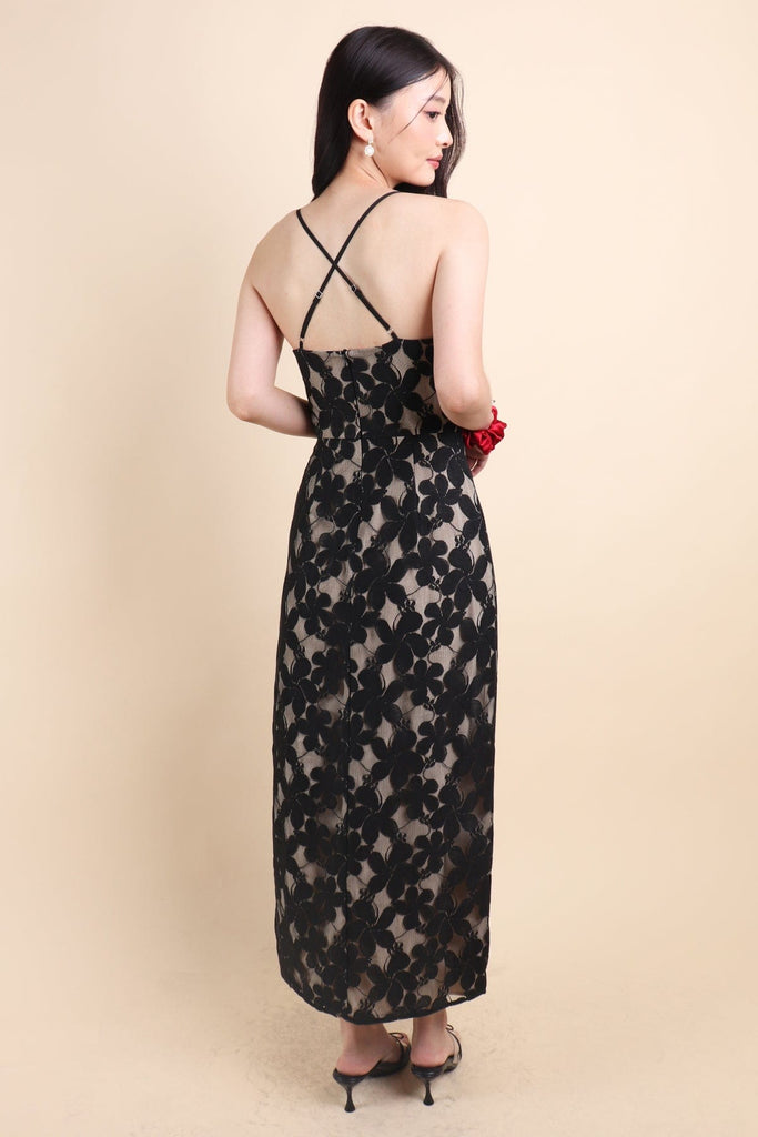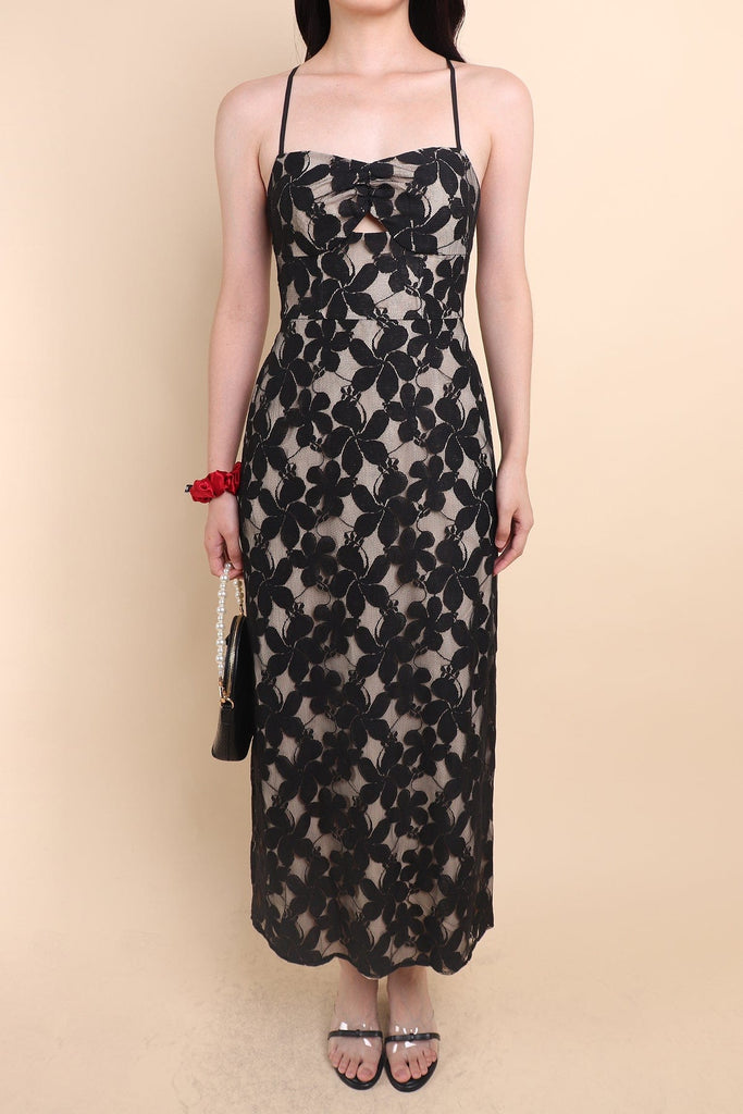 FRANCA LACE PADDED MAXI DRESS IN BLACK