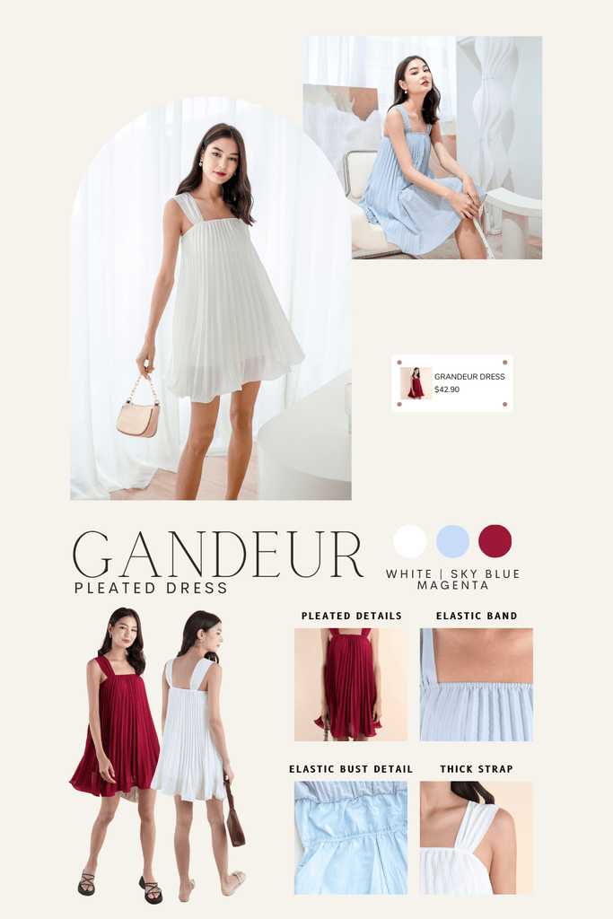 Effortlessly elegant. The beautifully made pleated details add dimension to the outfit, making it a visually captivating one. Fuss-free and easy to wear, Grandeur is the one to reach out for to create an instant put-together look! Also ideal for special occasions or parties with your statement jewellery and heels, completed with a bold lip!