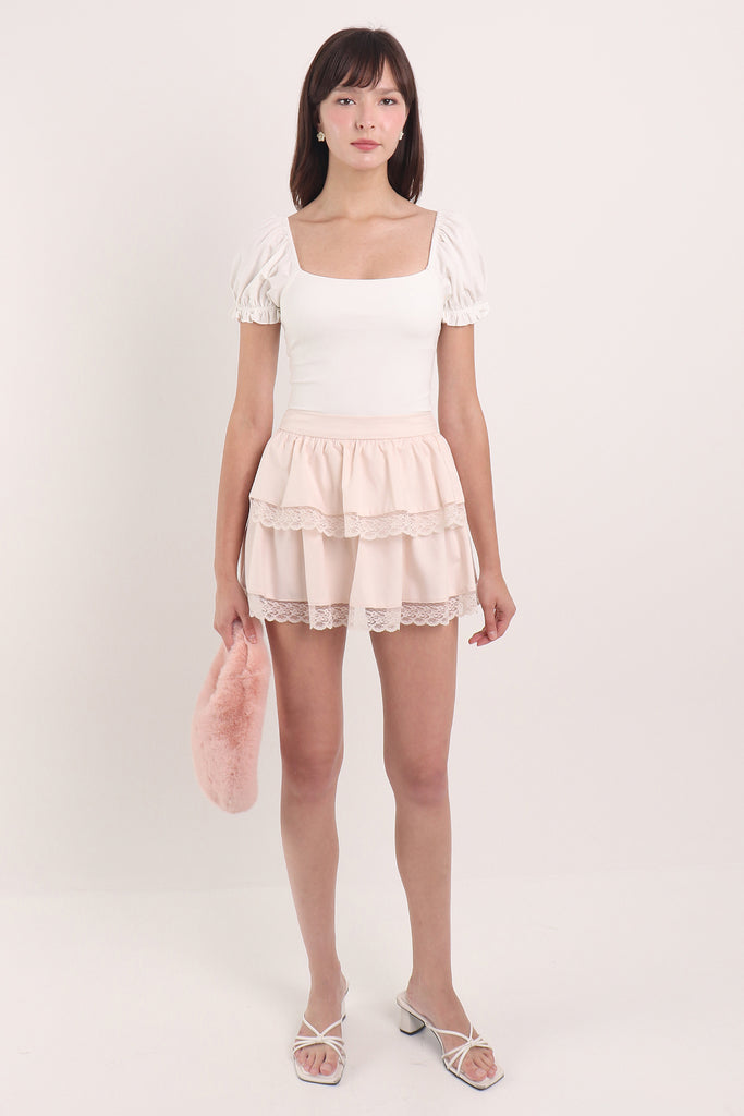 Gwyn combine the elegance of a skirt with the comfort and practicality of shorts. Featuring delicate lace trimming along the hem, they add a touch of femininity and charm to your outfit. Stylish yet versatile, they’re perfect for both casual outings and dressier occasions.