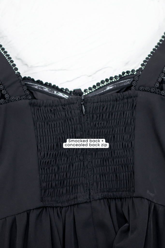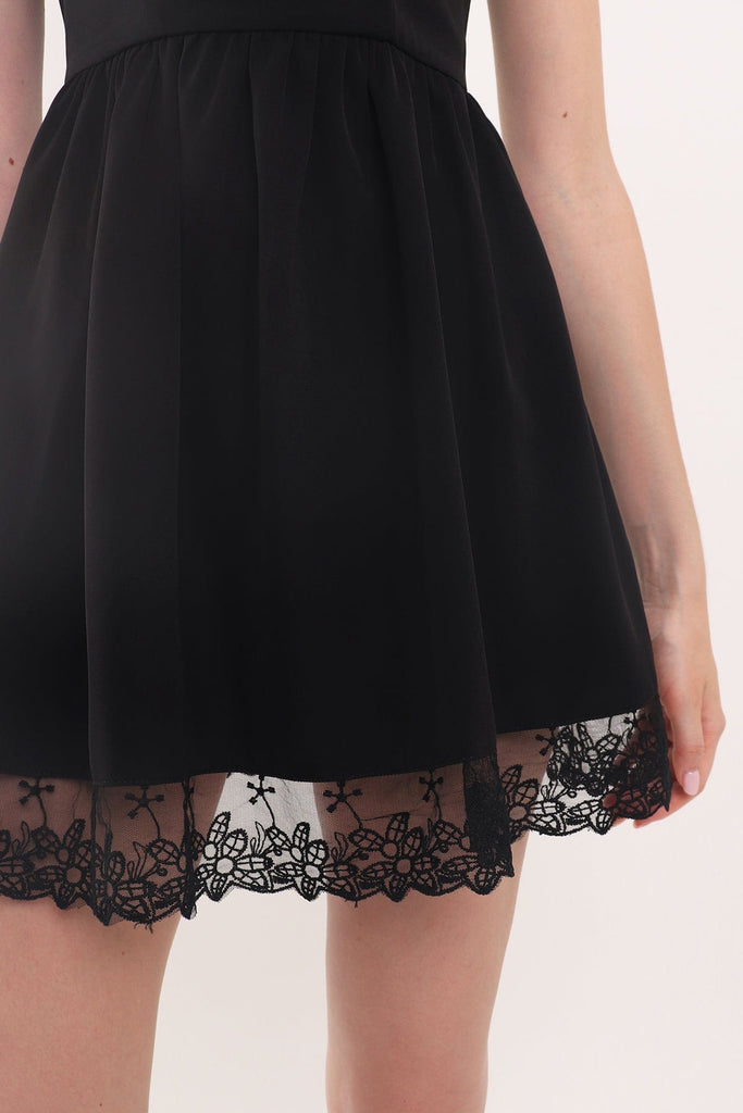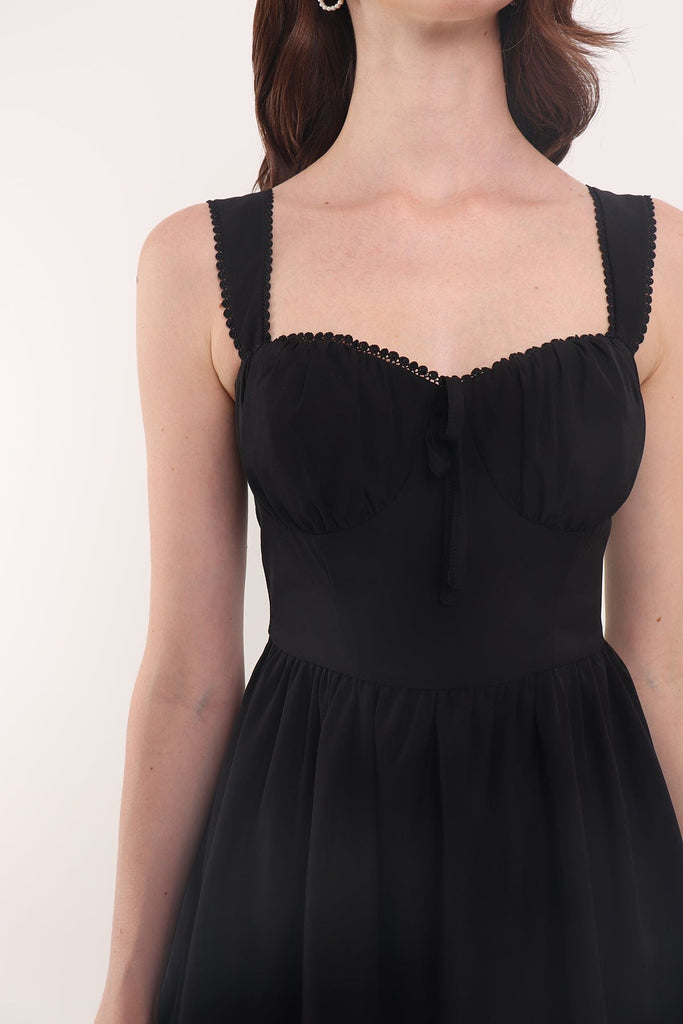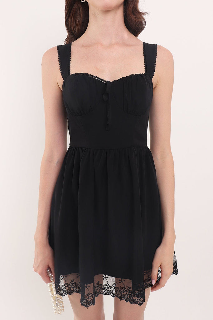 HALLIE PADDED LACE DETAILING DRESS IN BLACK