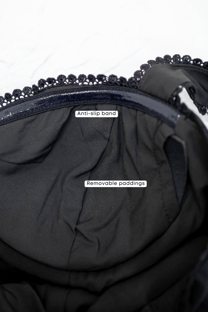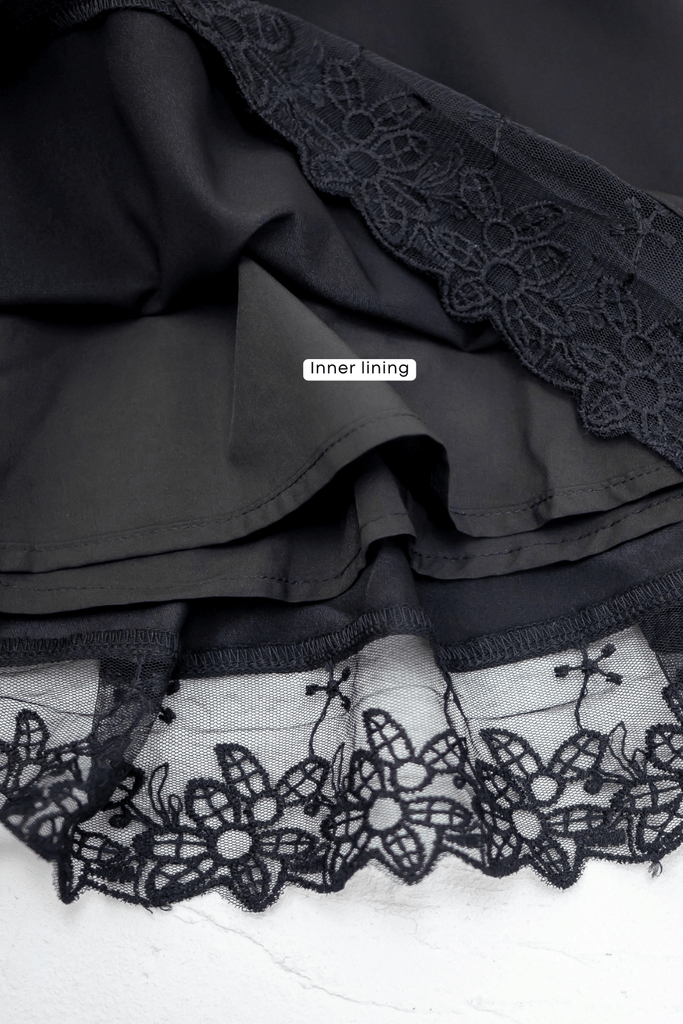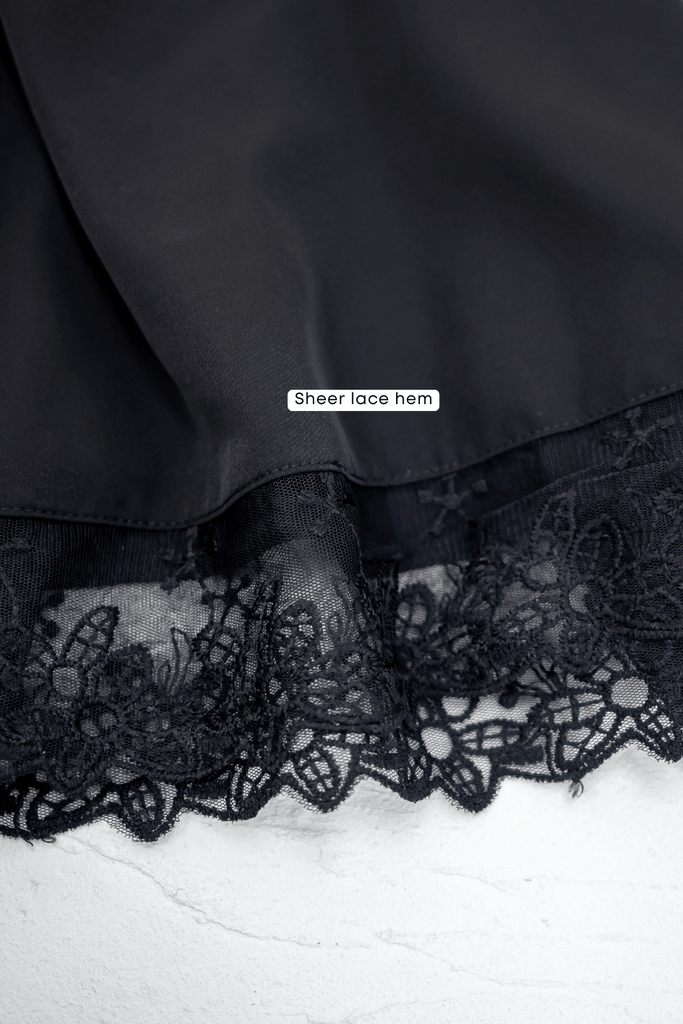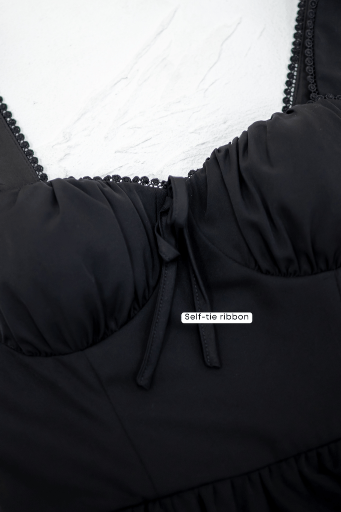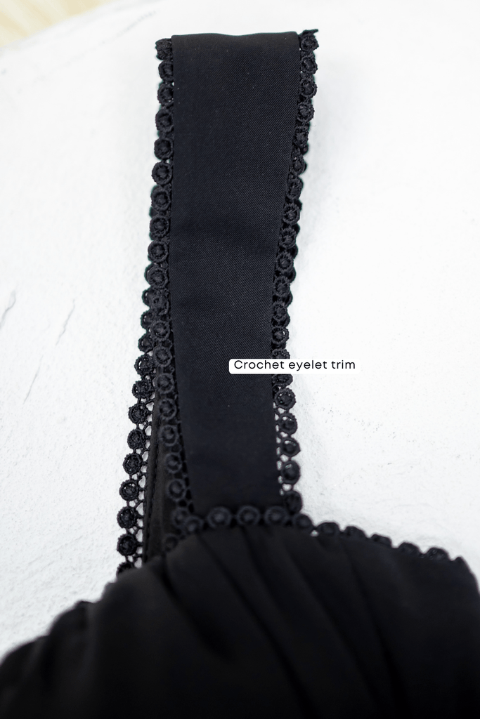 HALLIE PADDED LACE DETAILING DRESS IN BLACK