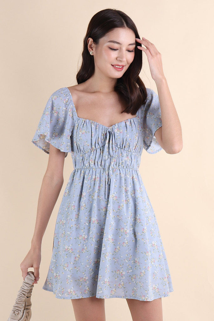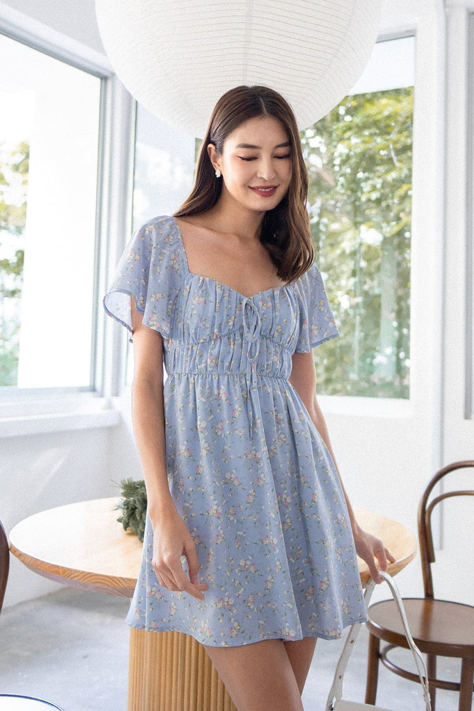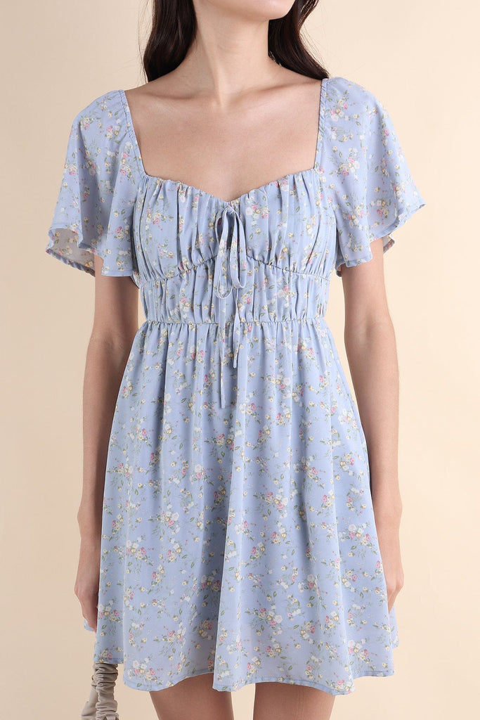 Hayley is a completely sweet and feminine number with flutter sleeves and a tie-front ribbon for added detail. Perfect for your spring and summer adventures-- Whether you're lounging on a picnic blanket or strolling through a blooming park, Hayley makes you feel like you're walking through a field of flowers on a spring day!