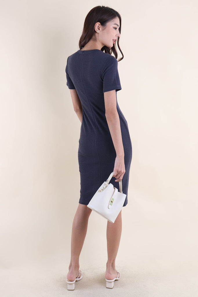 HENDRIC RIBBED BUTTONED MIDAXI IN STEEL BLUE