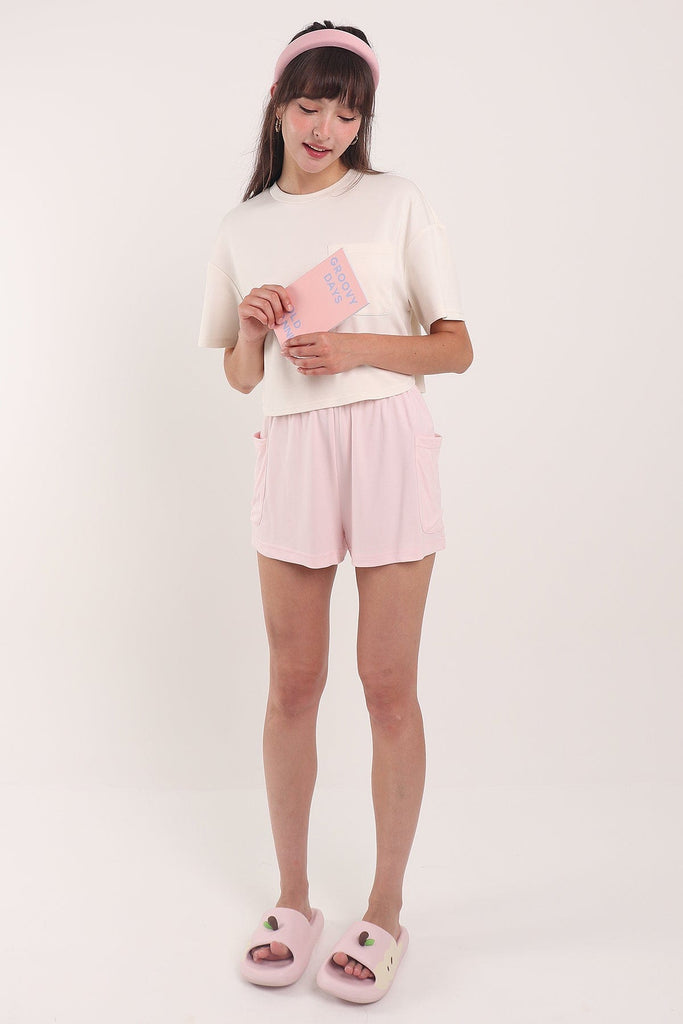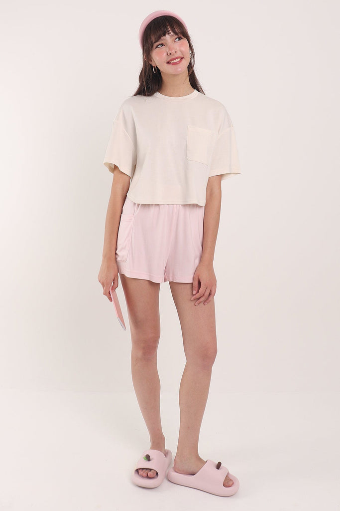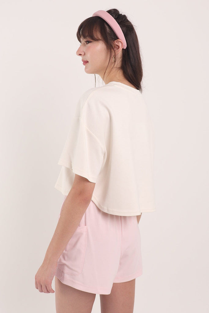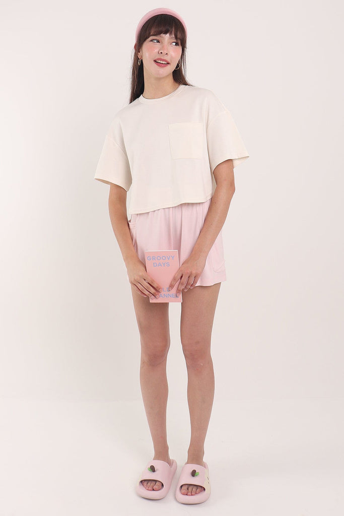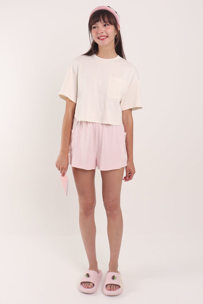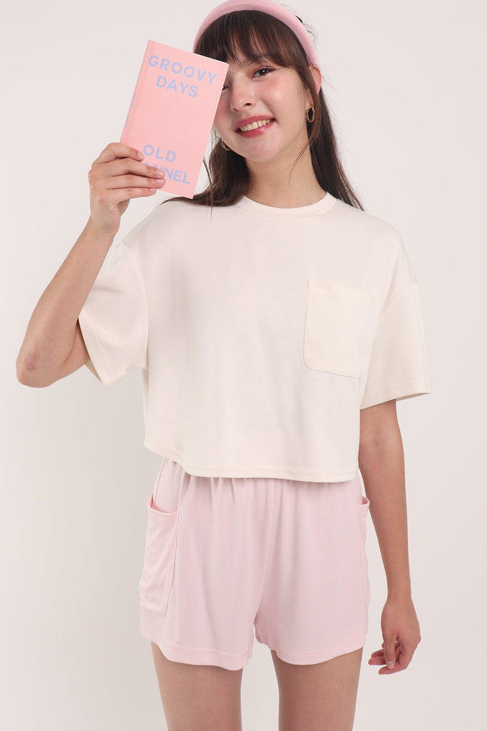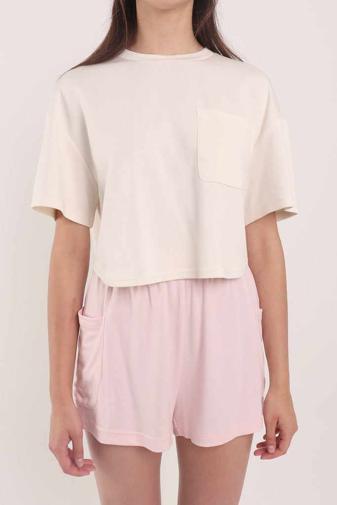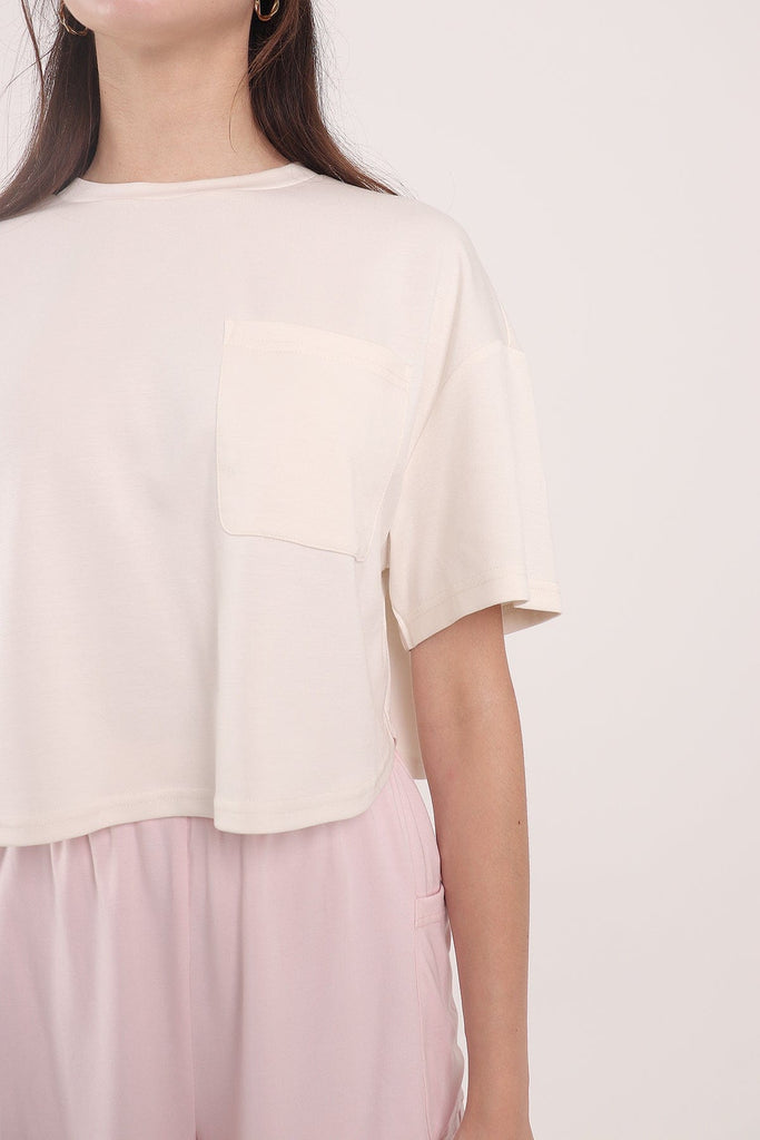HENLEY POCKET TEE TOP IN CREAM WHITE