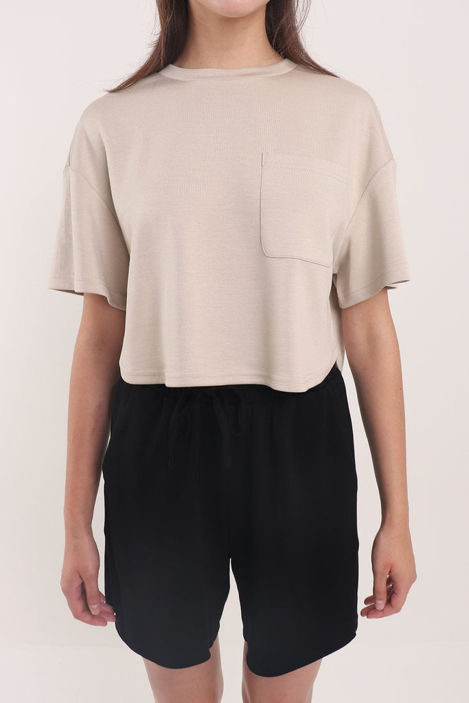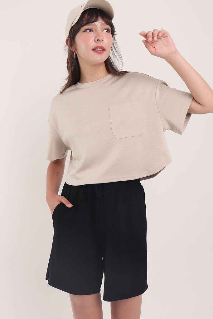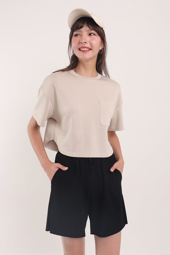 HENLEY POCKET TEE TOP IN ECRU