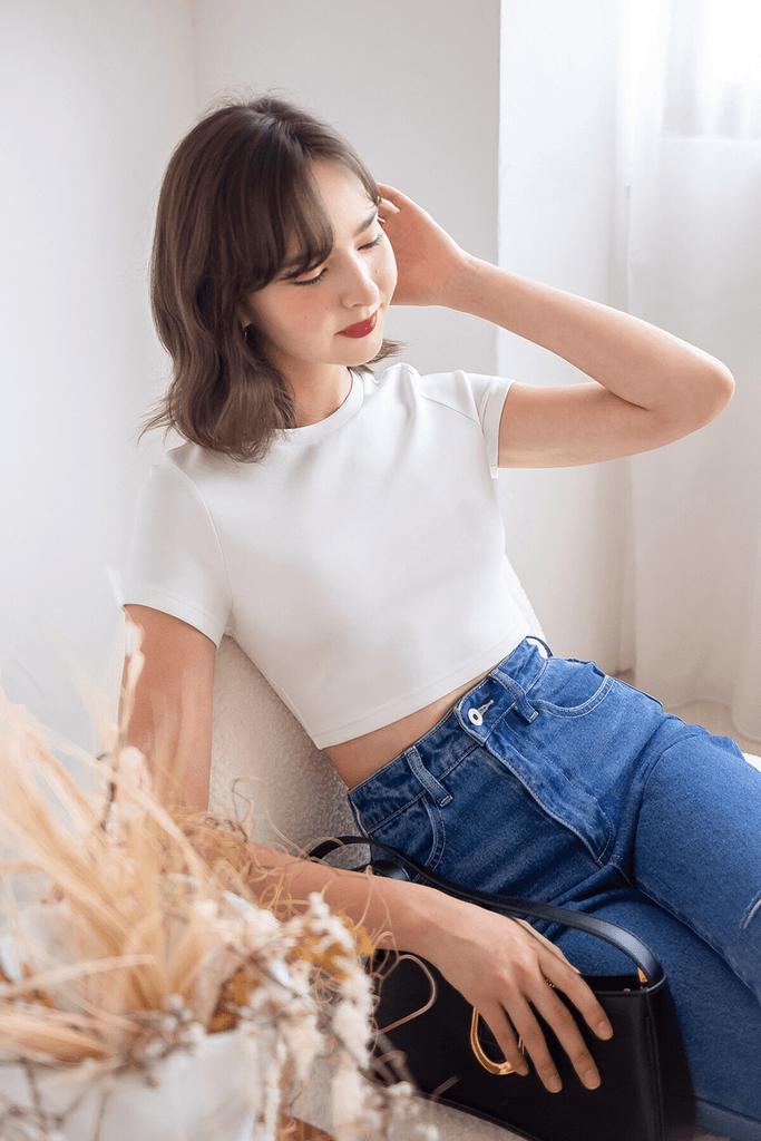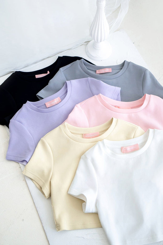 NM’s very own baby tee ₊⊹ Coming in 6 delightful colours: black, white, pink, lilac, grey blue and pastel yellow! With its cropped length and snug fit, Kayce effortlessly add a touch of playfulness to any outfit. Whether paired with high-waisted jeans for a casual day out or layered under a blazer for a chic evening look, cropped baby tees adapt to any style with ease. Their versatility makes them a staple in every wardrobe, offering endless possibilities for mixing and matching to create a variety of ensembles!