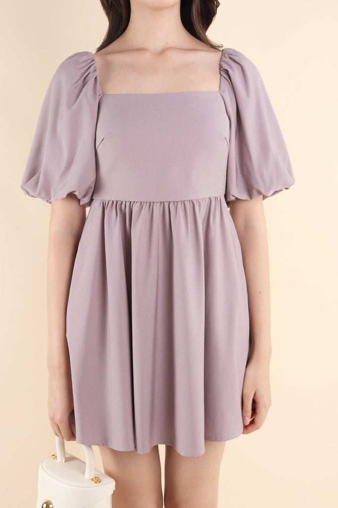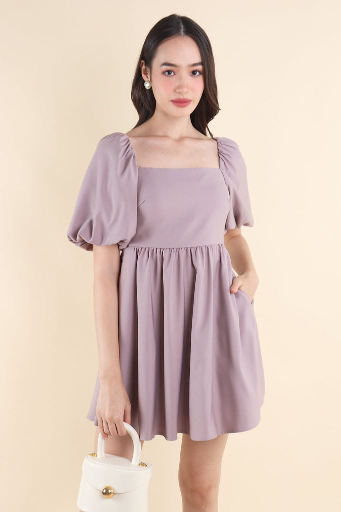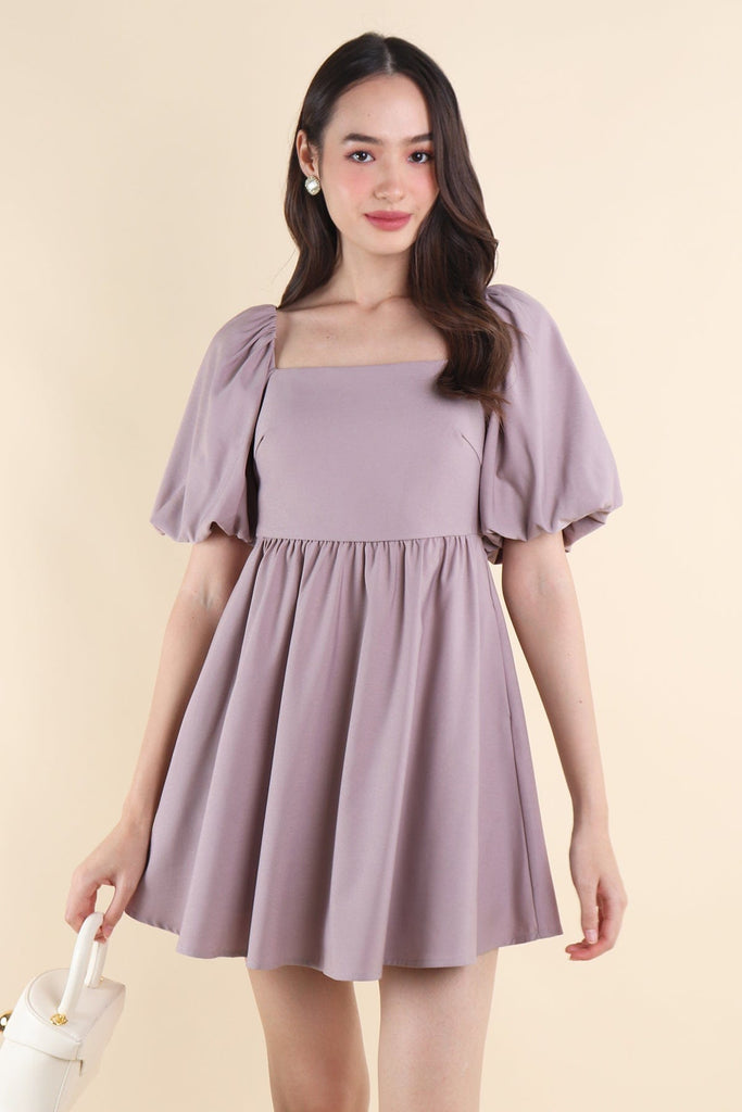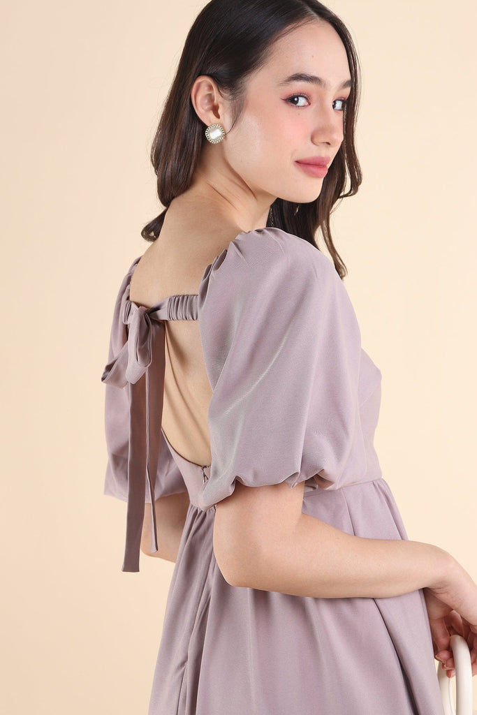 KRISA PADDED LOW-BACK DRESS IN DUSTY MAUVE