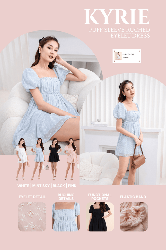 A mini length, ruched bust, puffy sleeves and intricate eyelet details, this dress is the epitome of adorable and sweetness! Pair Kyrie with your favourite kicks for a simple and effortlessly cute outfit!