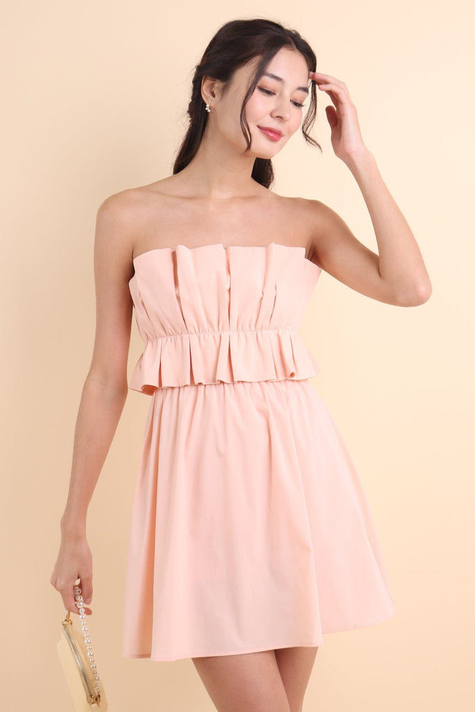 LANA RUFFLES ROMPER DRESS IN NUDE PINK