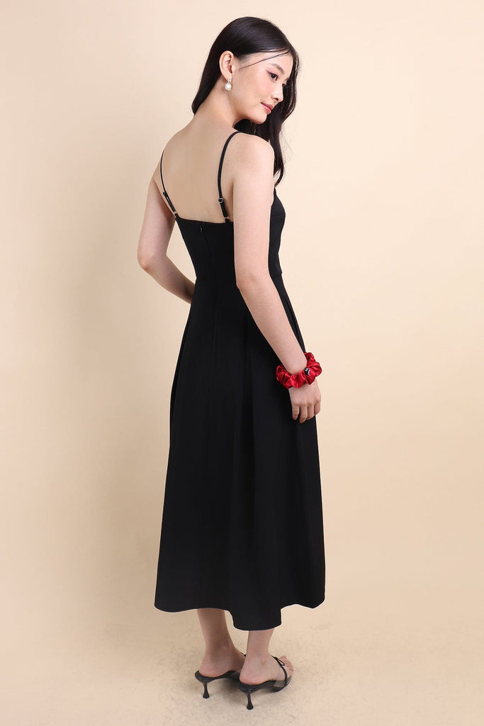 LAURELL EXQUISITE PEARL MAXI DRESS IN BLACK