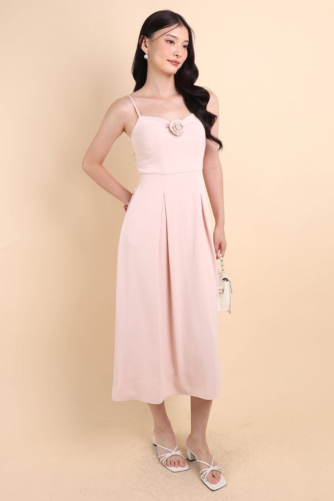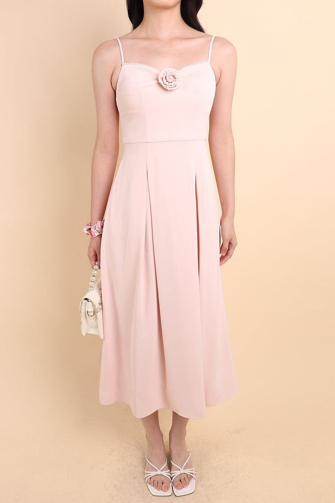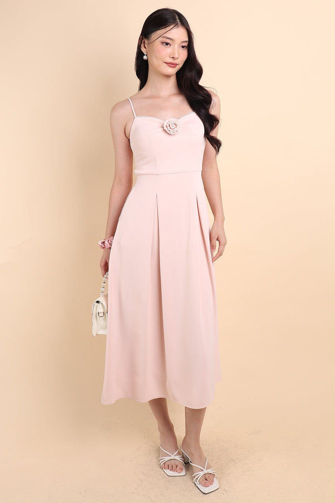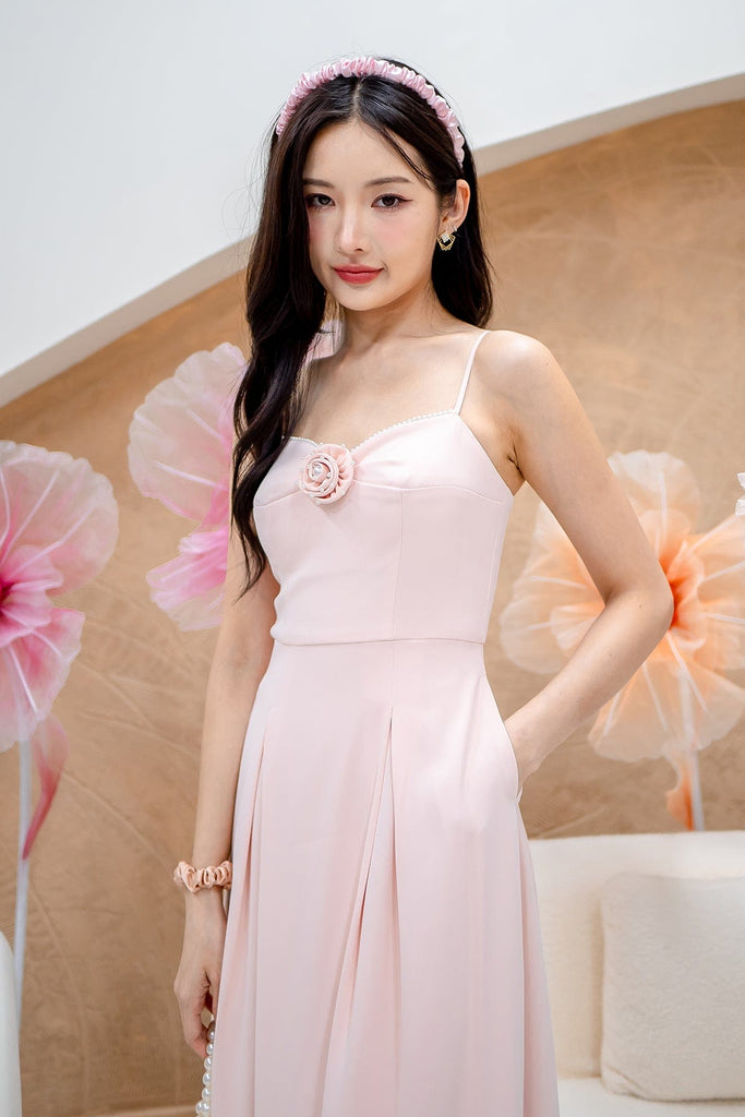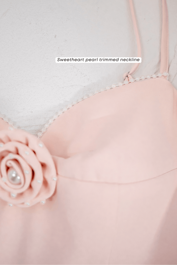 LAURELL EXQUISITE PEARL MAXI DRESS IN LIGHT PINK