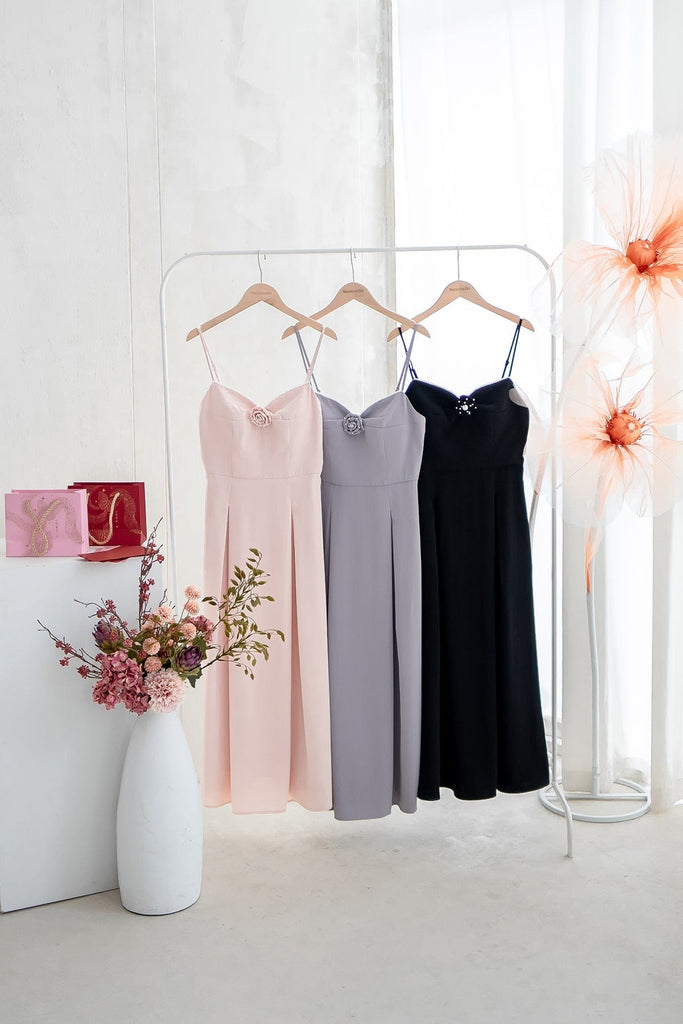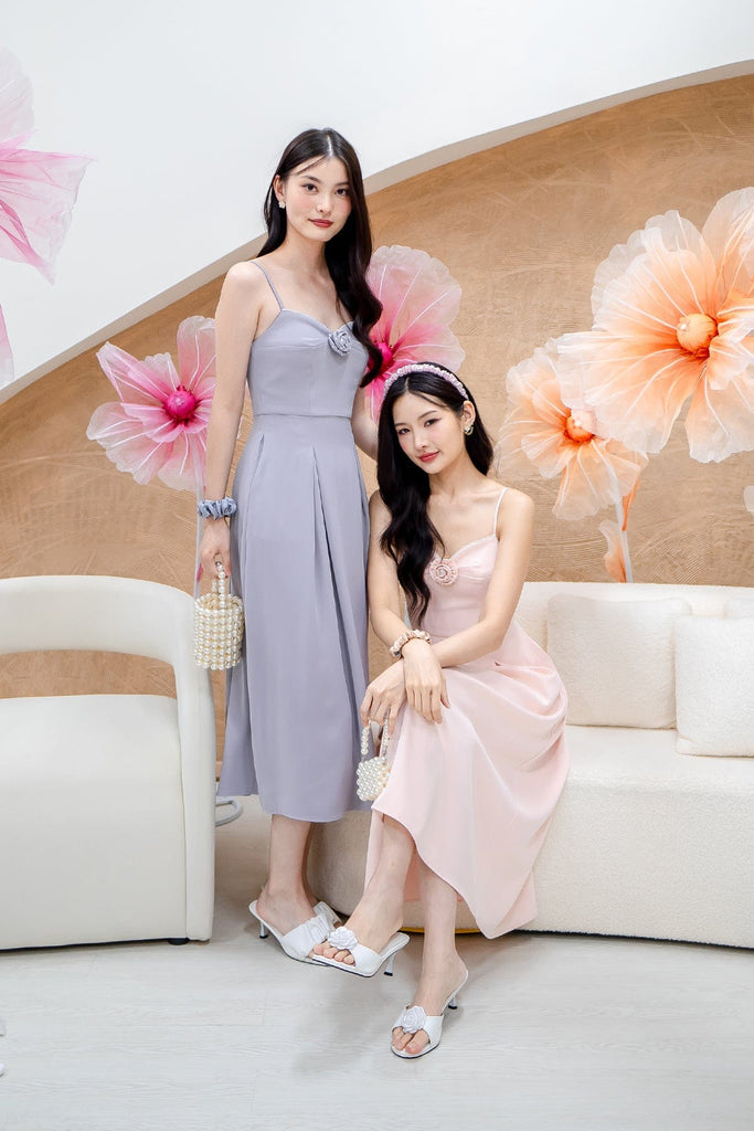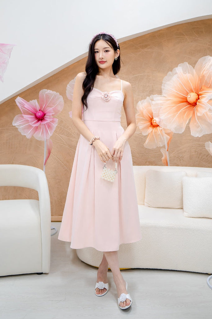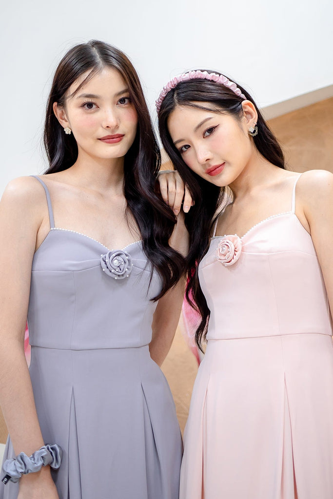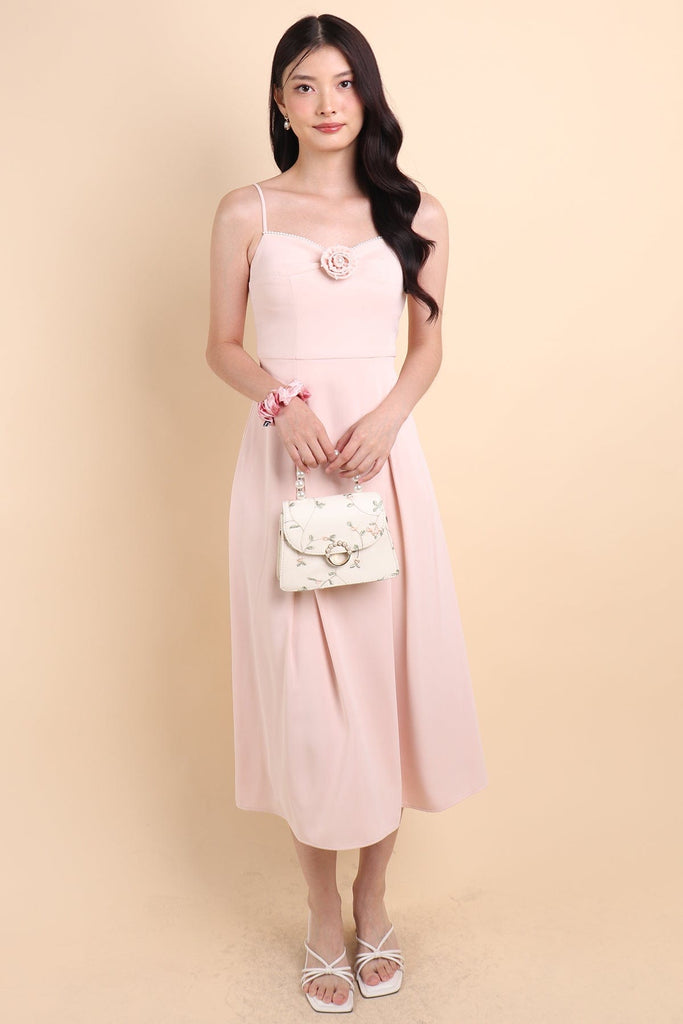 LAURELL EXQUISITE PEARL MAXI DRESS IN LIGHT PINK