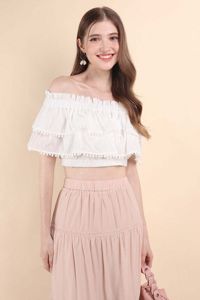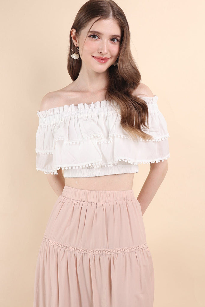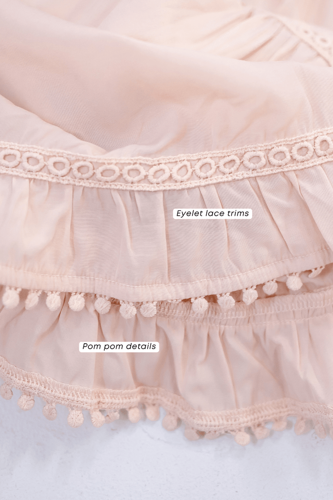 Lindsay captures the essence of delicate charm! With its playful pom-pom detailing that adds a touch of whimsy. The design gives it a relaxed, effortless elegance, evoking the breezy mountain air of the region. Perfect for warm afternoons, this top offers a beautiful balance of traditional flair and modern style.