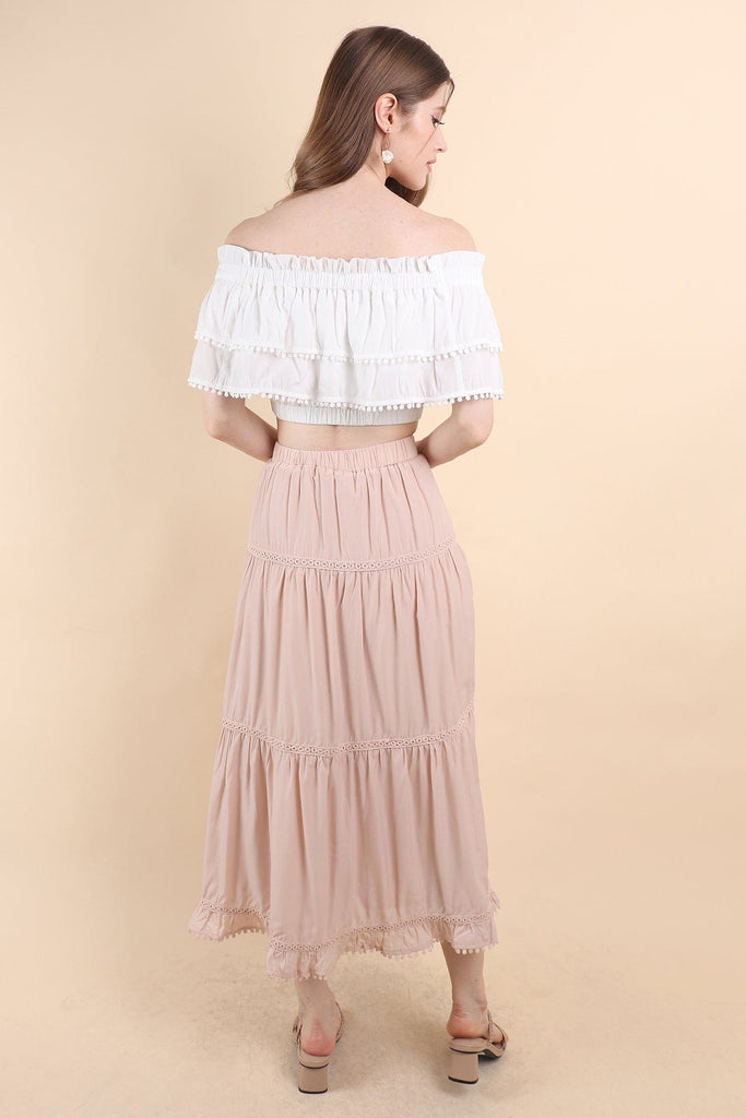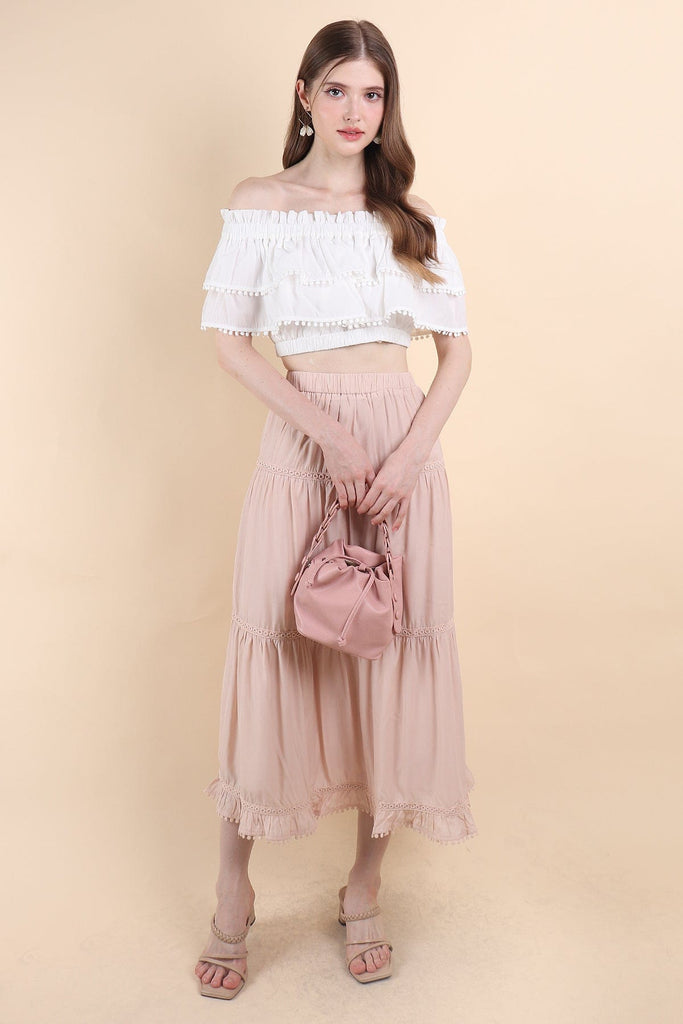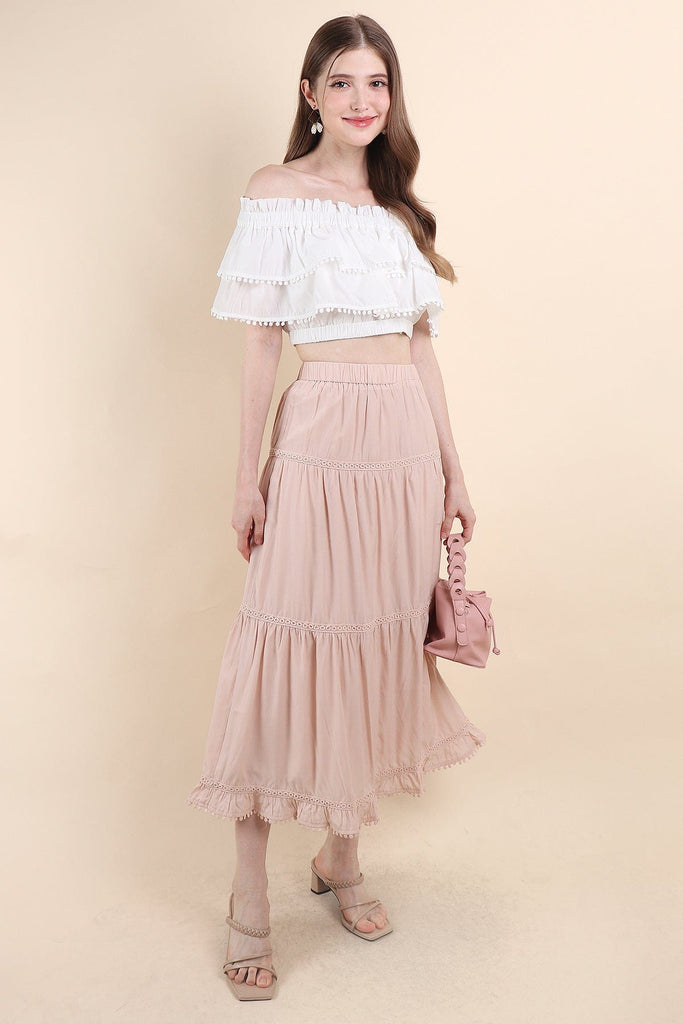 LINDSAY BANDED MAXI SKIRT IN PINK BEIGE
