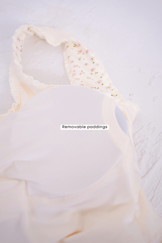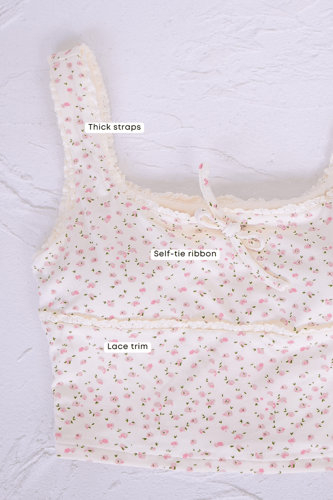 Lissie features a charming floral print that adds a feminine touch to any outfit. Designed with a flattering square neckline and built-in padding, it offers both style and light support. Its soft, stretchy fabric ensures a comfortable fit, making it perfect for warm-weather layering or wearing on its own.