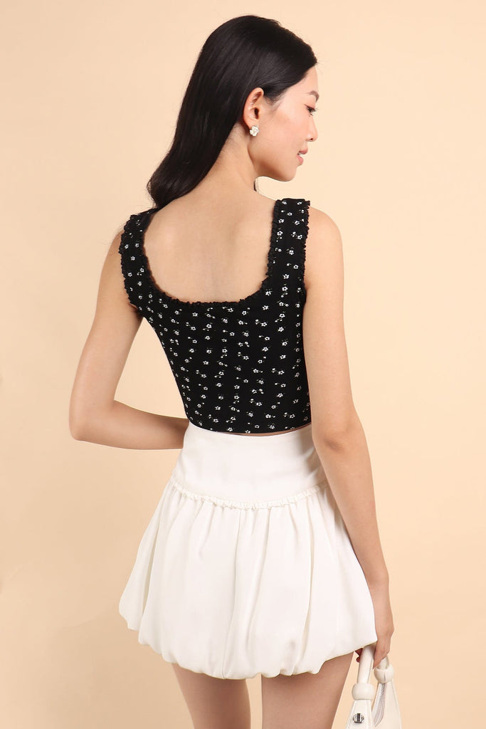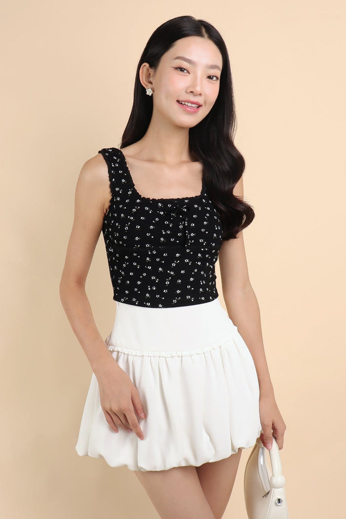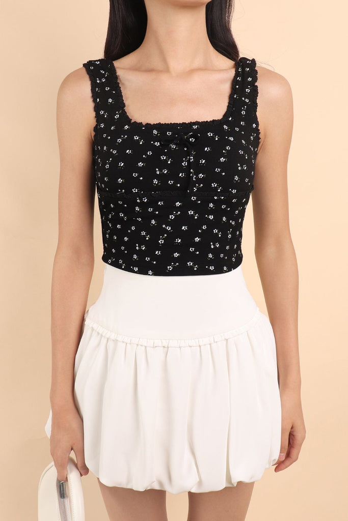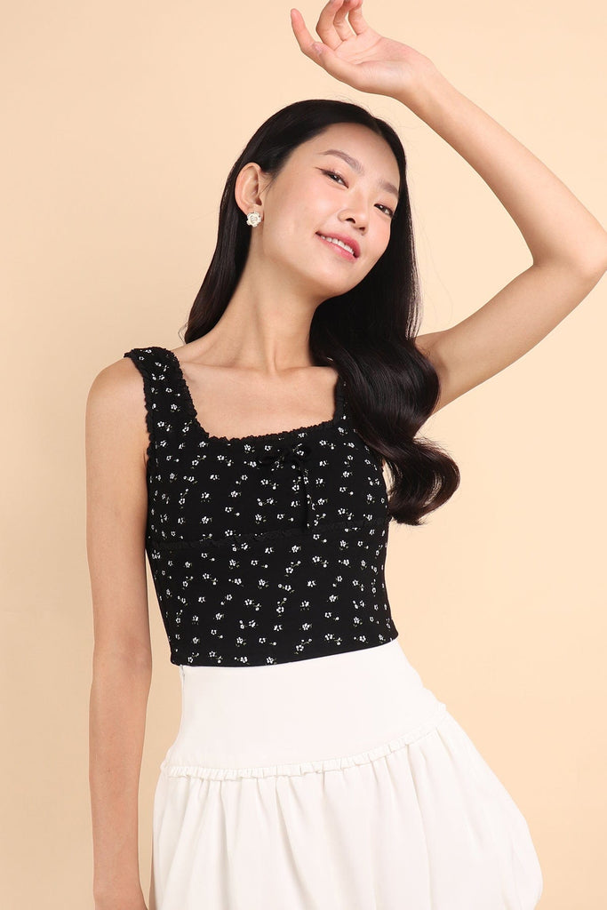 LISSIE FLORAL SQUARE NECK PADDED TANK TOP IN BLACK
