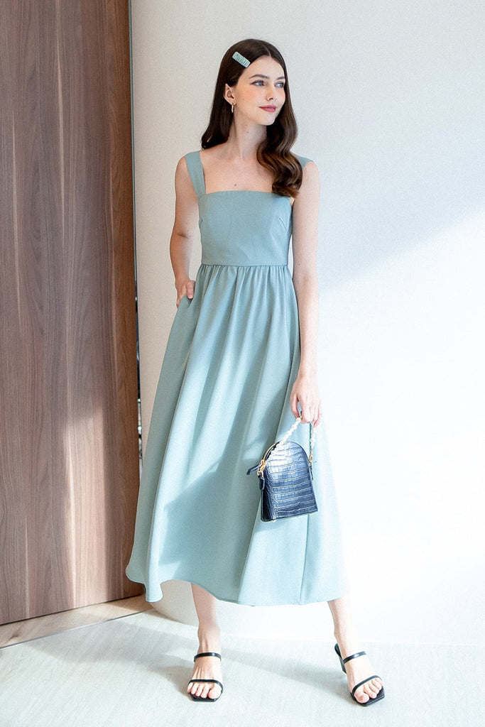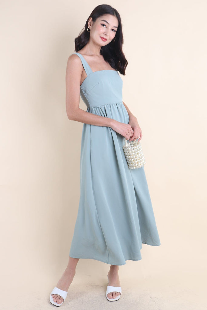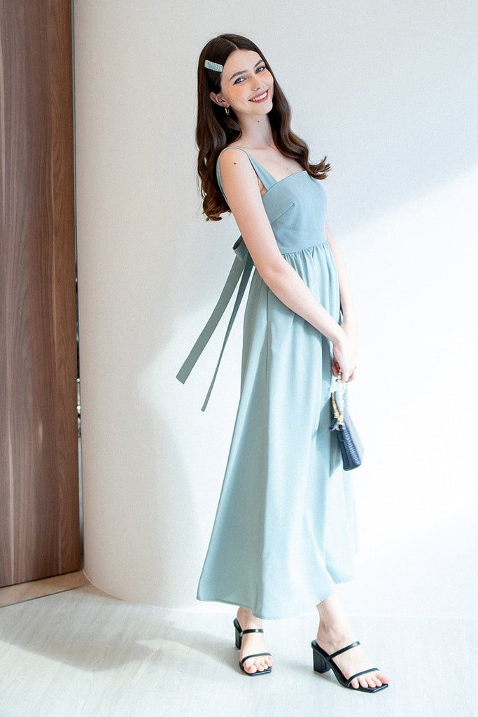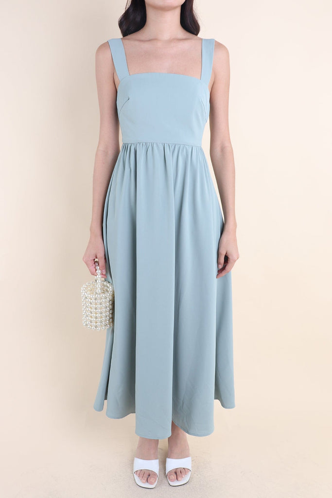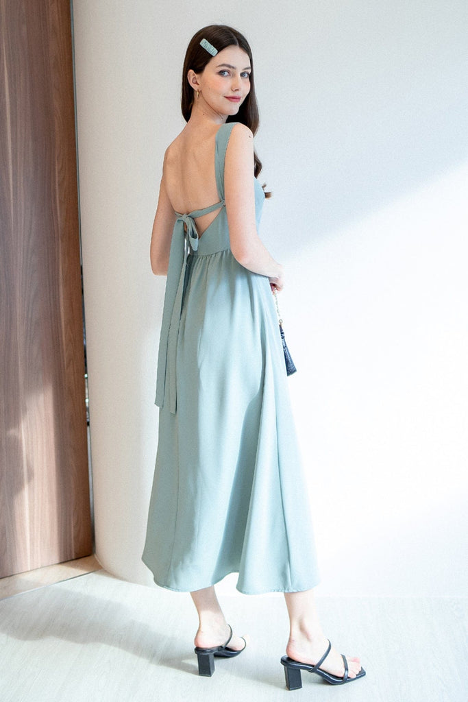 LOHAN TIE-BACK MAXI DRESS IN FERN GREEN