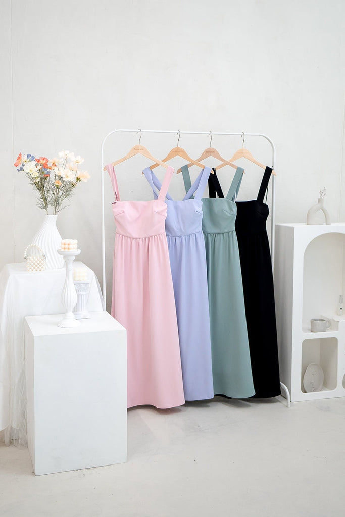 A captivating blend of chic design and effortless style. Lohan features a flattering silhouette accentuated by a tie-back detail, adding a touch of allure to its elegant aesthetic. Crafted from sumptuously soft fabric, this dress drapes gracefully, exuding an air of understated sophistication.