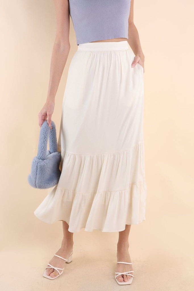 Elevate your wardrobe with our Lumiere set, a stunning ensemble that effortlessly embodies modern charm and timeless elegance. This set consists of a ruched top with flutter sleeves, exuding a delicate and romantic allure while the cascade skirt completes the look with its graceful flow, offering a sense of movement and fluidity. Make a stylish statement with Lumiere ✧