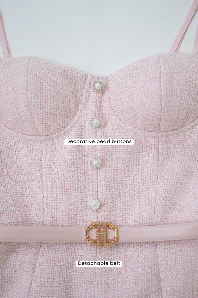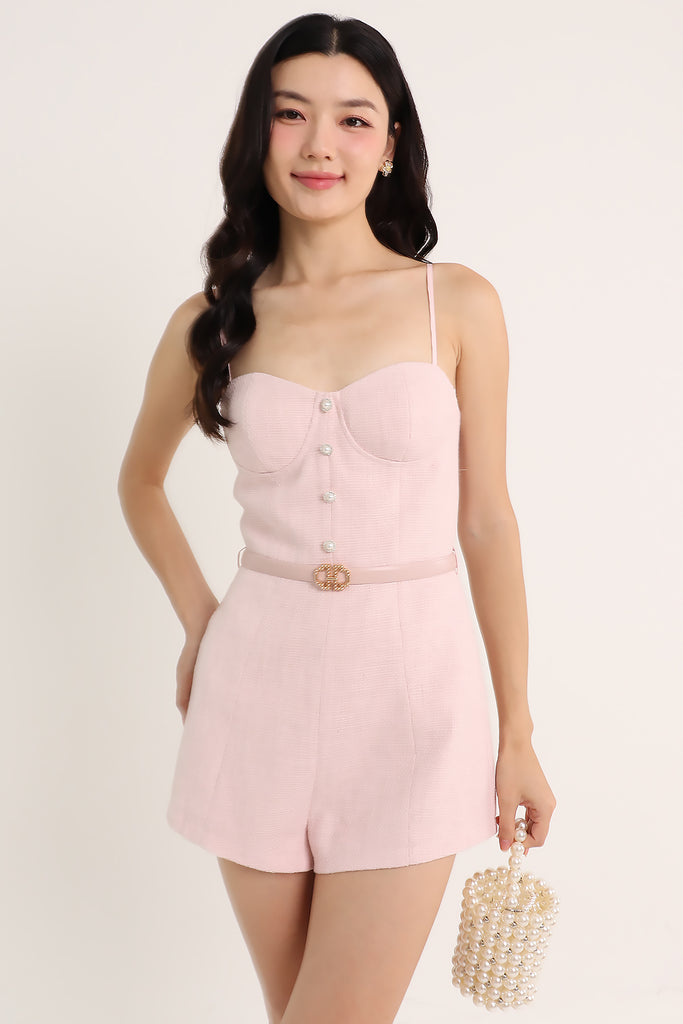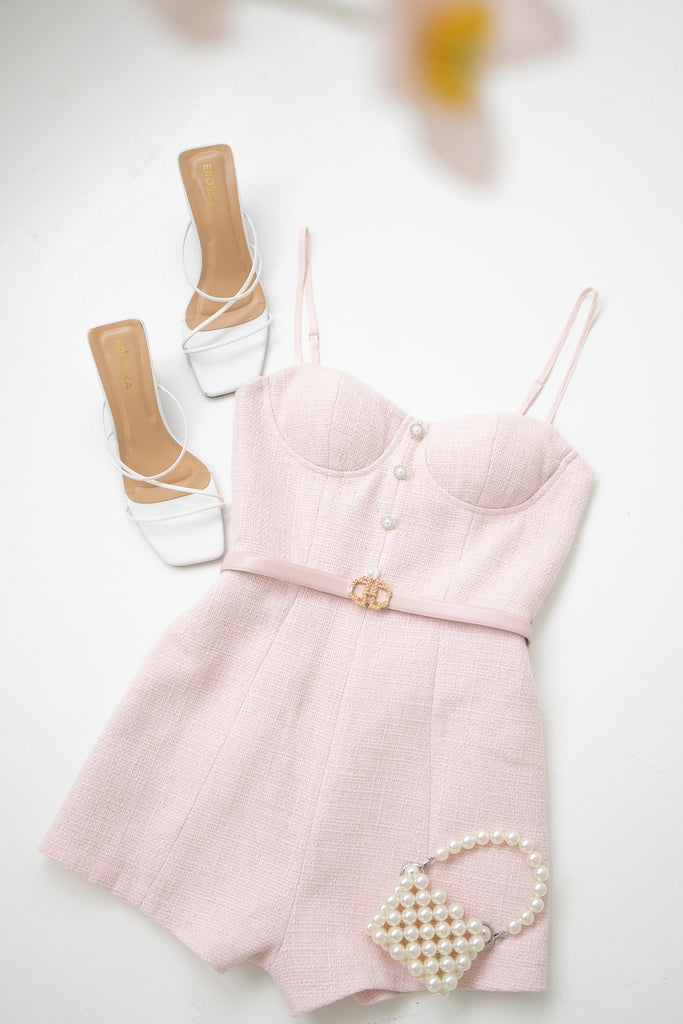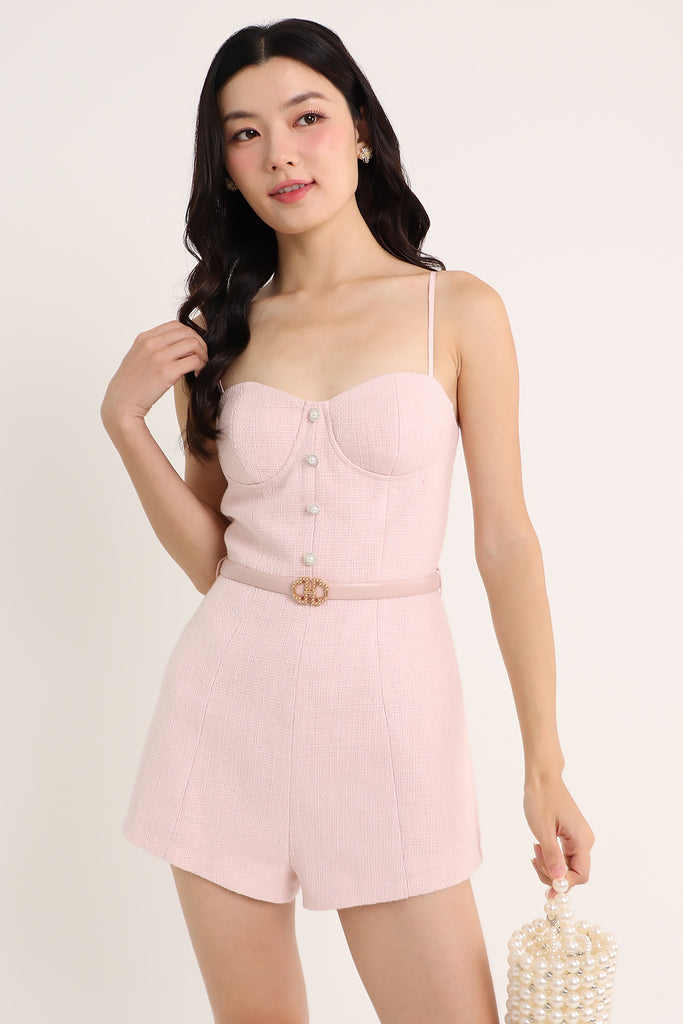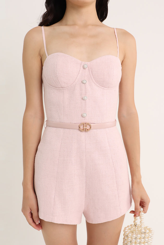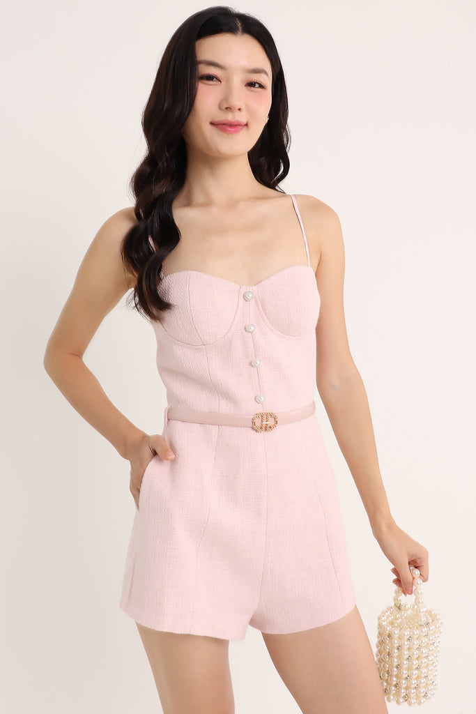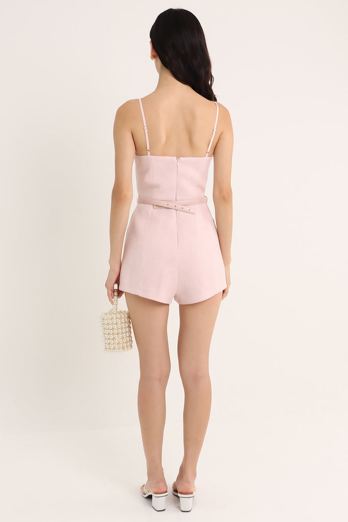LUNARIA TWEED BELTED ROMPER IN PINK