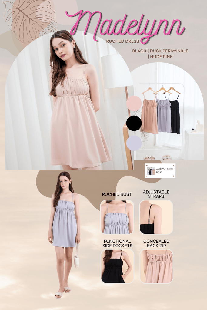 Sister of Maddy! With its ruched bust details and flared bottom silhouette, Madelynn has a flattering fit that gives off a sweet and feminine look! This dress comes in three versatile solid colours suitable for various occasions. Perfect staple for our local weather!
