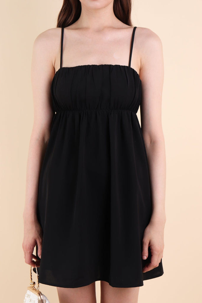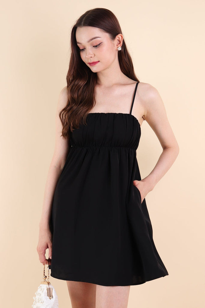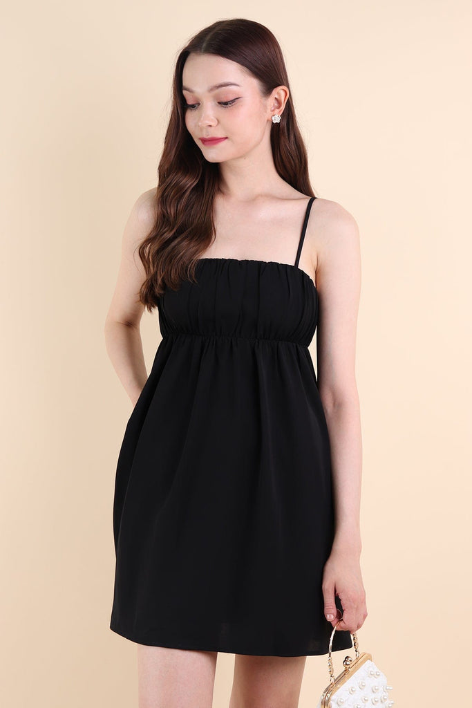 MADELYNN RUCHED DRESS IN BLACK
