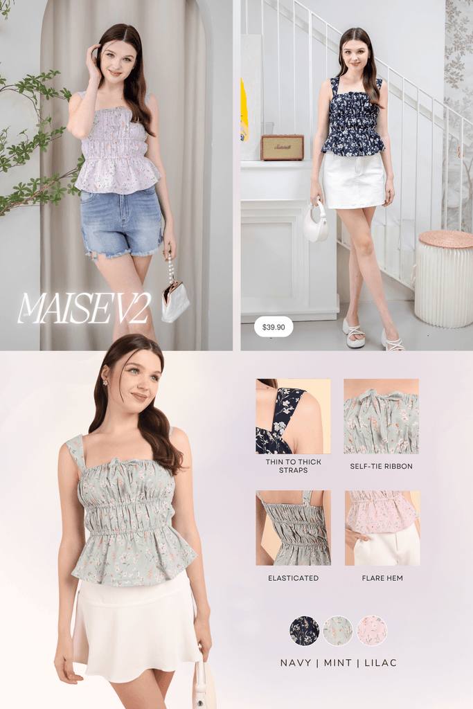 MAISE V2 FLORAL RIBBON TIER TOP IN MINT