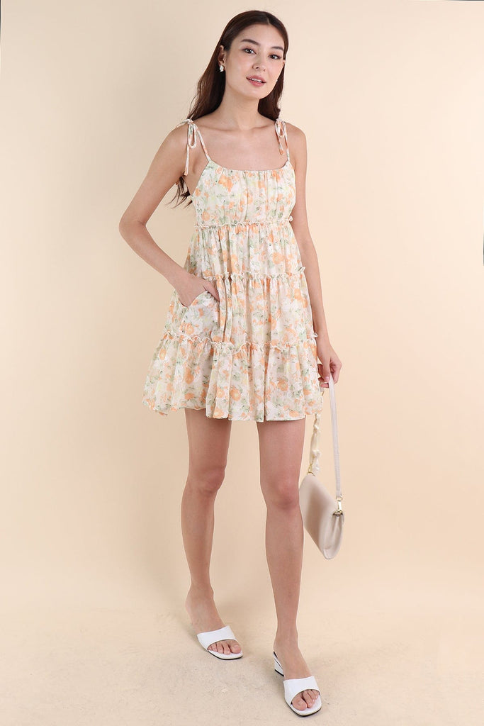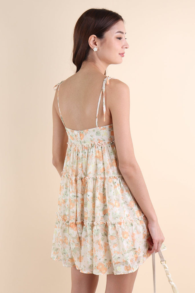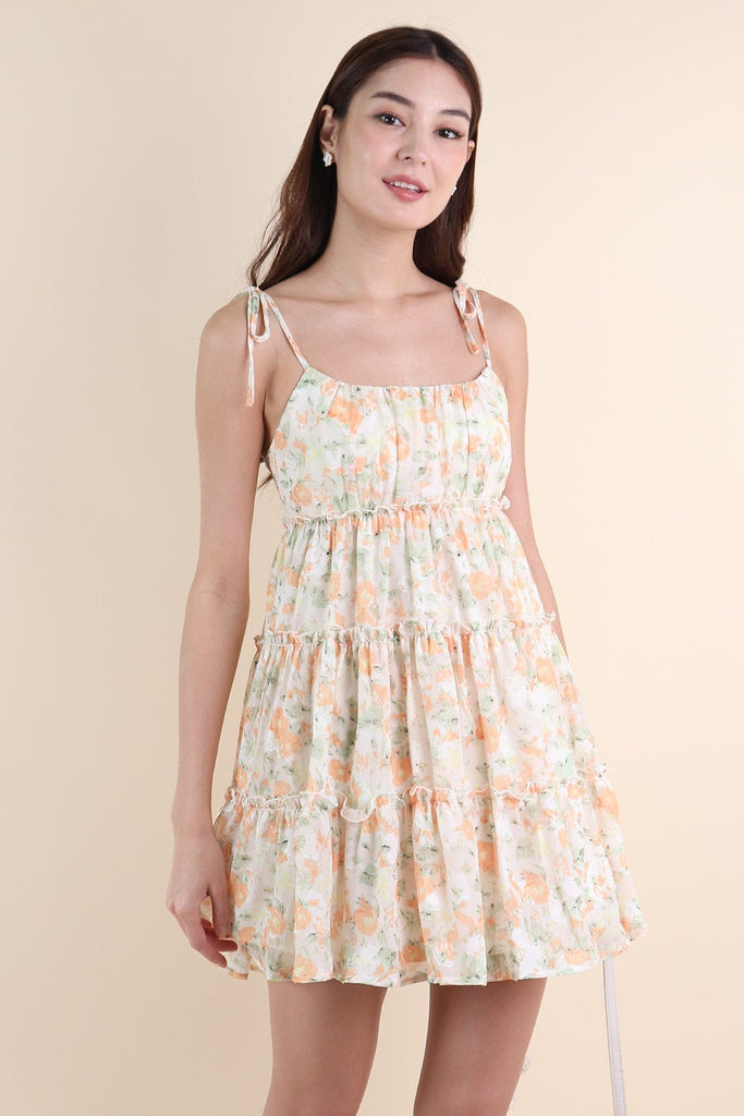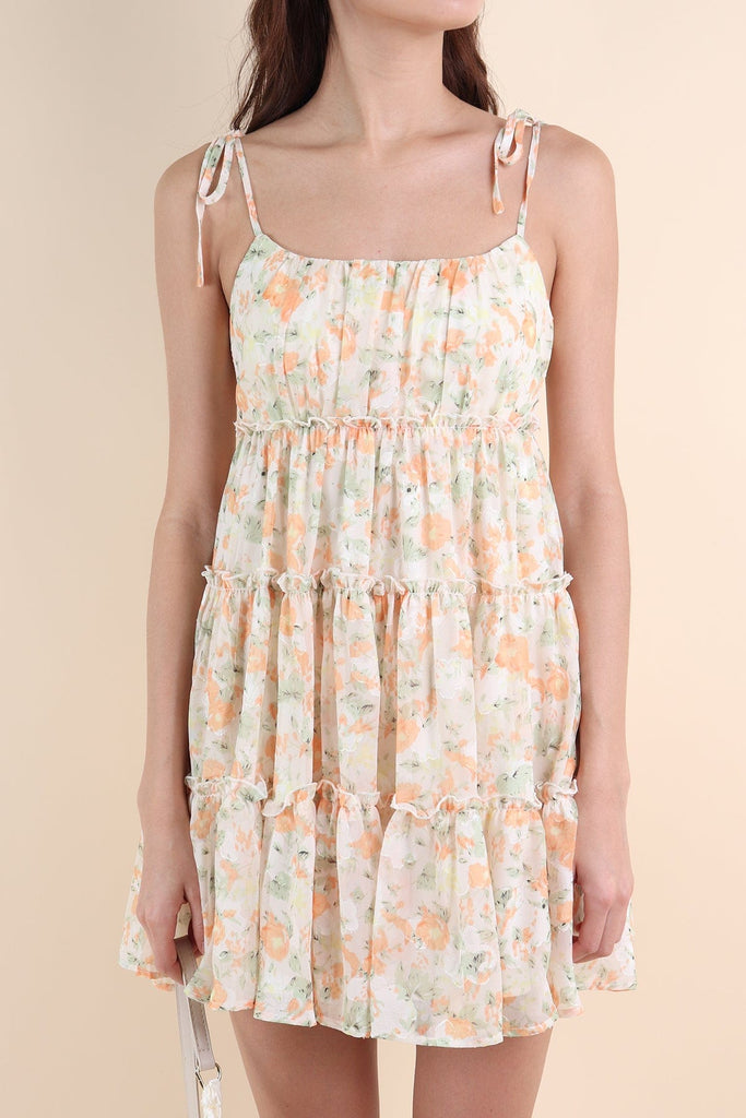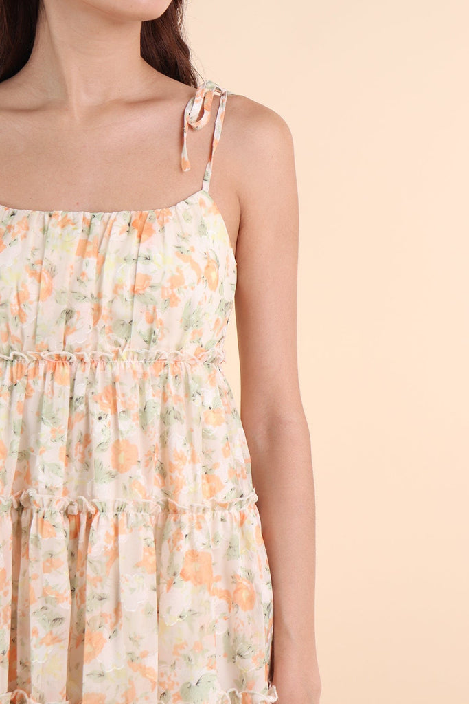 MAJORELLE FLORAL TIER DRESS IN ORANGE