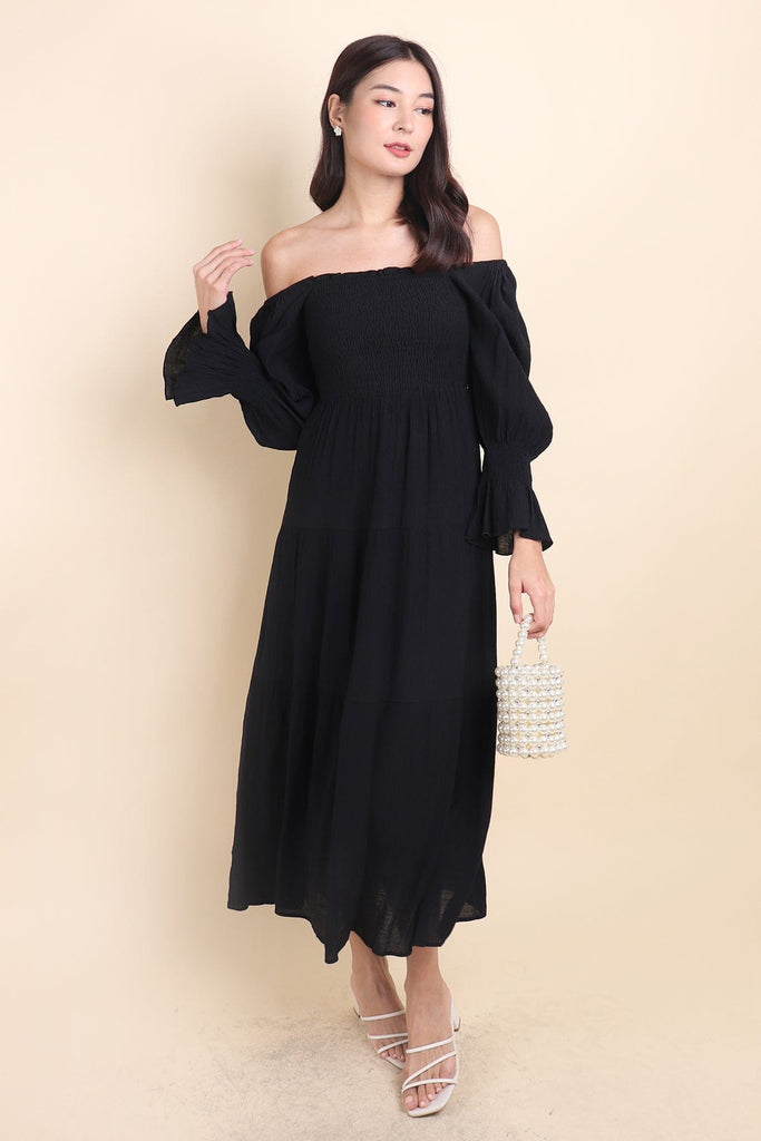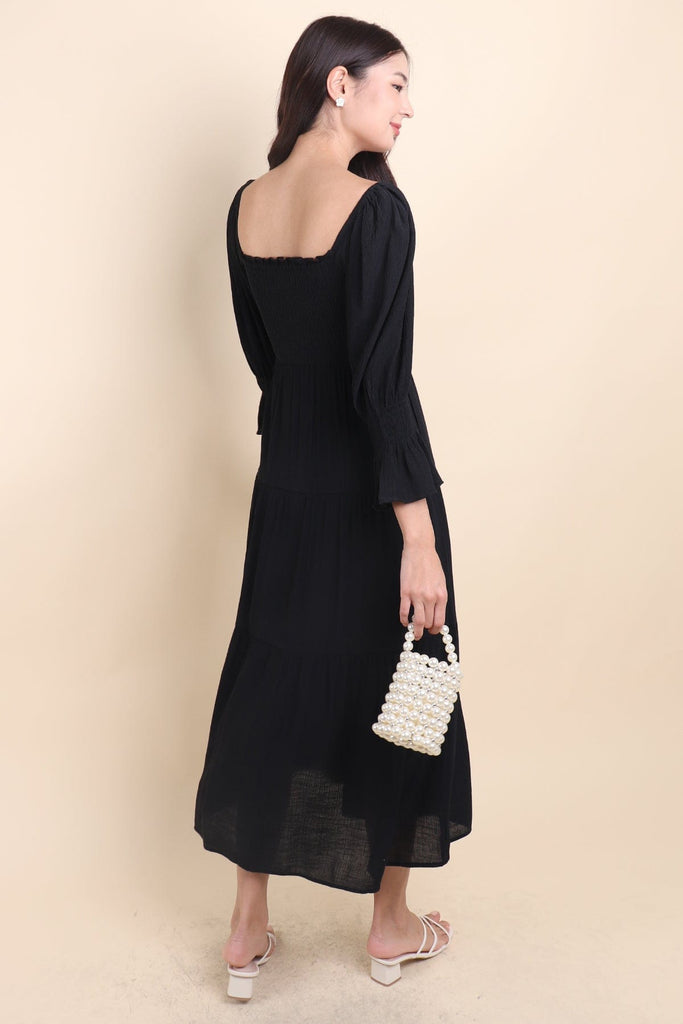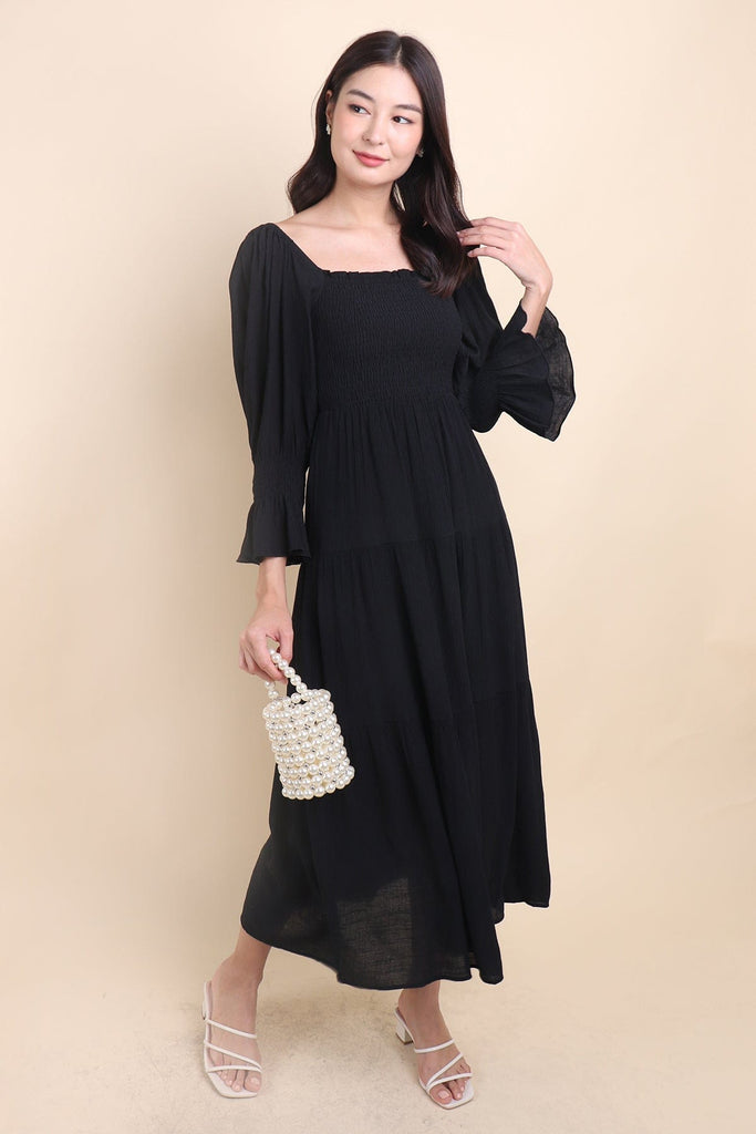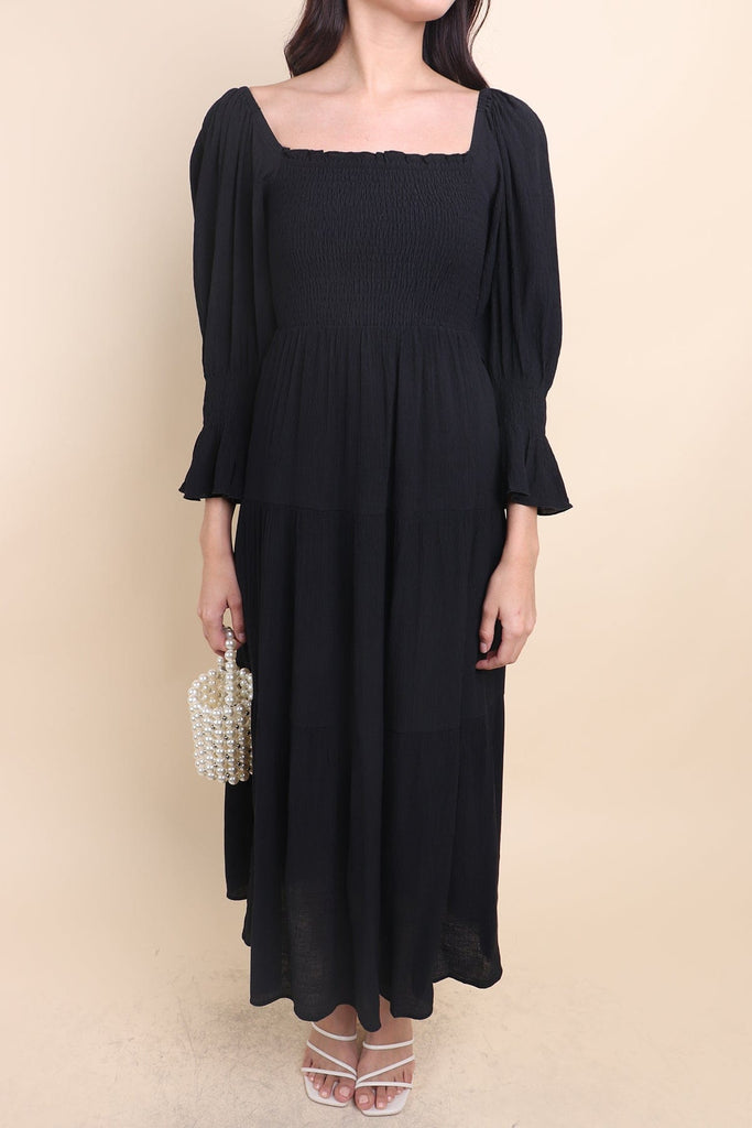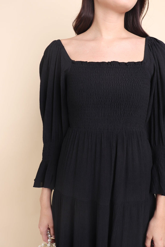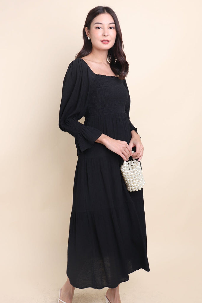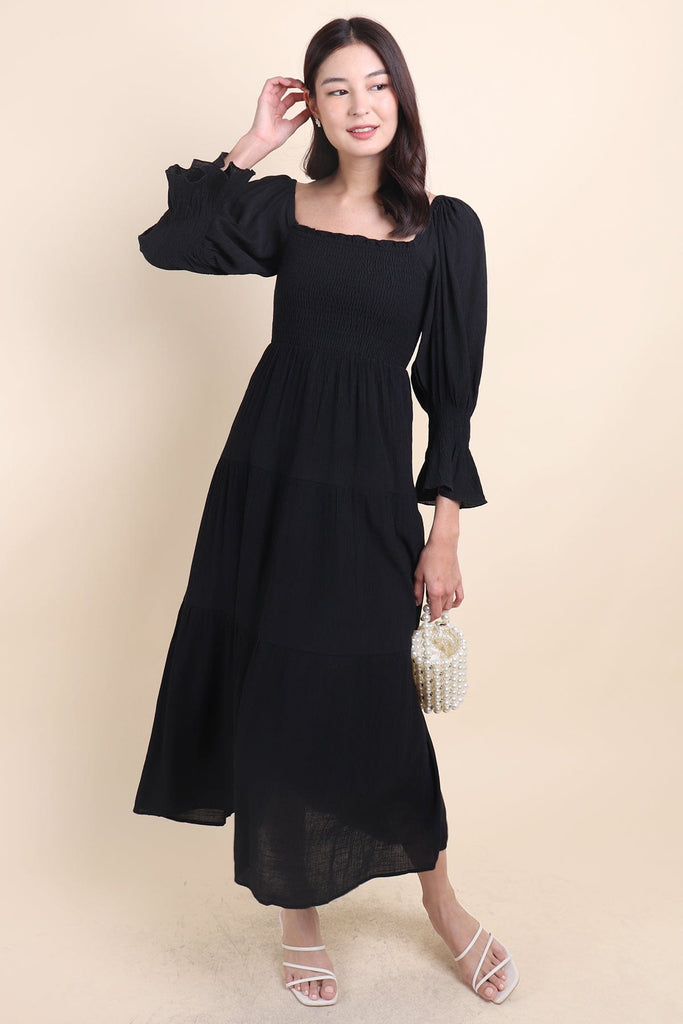 MEADOW SMOCKED MAXI DRESS IN BLACK