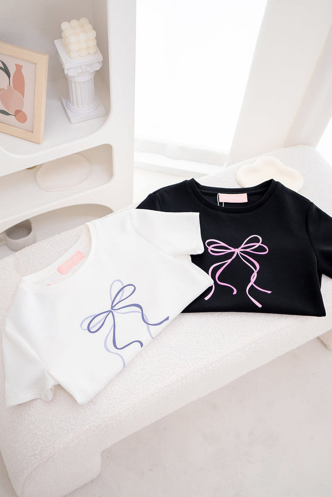 ⋆˚𝜗𝜚˚⋆ Melody is a stylish t-shirt with a prominent ribbon design on the front, enhancing its visual appeal. The ribbon adds a unique and eye-catching element to the shirt, making it a versatile piece for both casual and semi-formal wear. Its design balances charm with practicality, offering a standout feature that complements various outfits effortlessly.