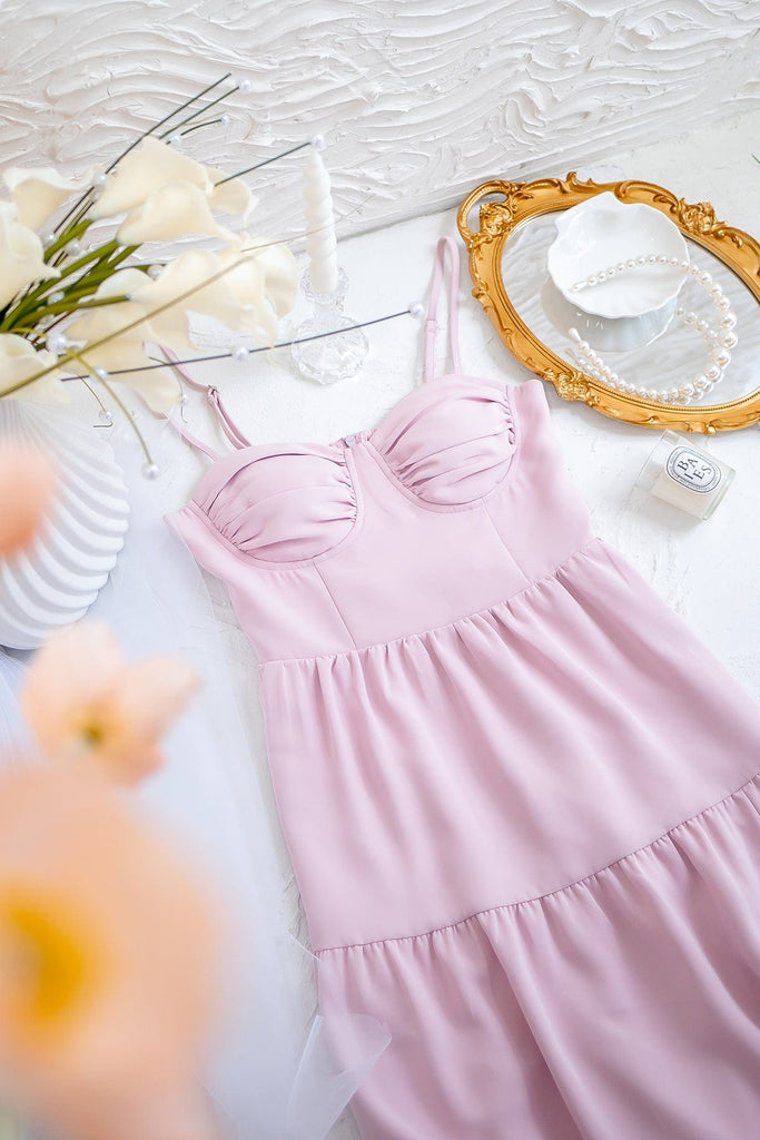 Shimmers with a celestial elegance, as it sleek, fitted bustier design captures the ethereal glow of moonlight. The dress sways with every step, evoking the enchanting mystery of a moonlit night. Perfect for a twilight soirée or a romantic evening, this dress exudes a dreamy, otherworldly charm.