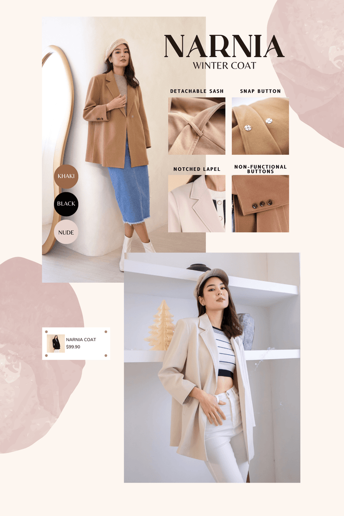 Narnia effortlessly combines fashion and function, making it the perfect outerwear companion! We suggest donning this coat in temperatures around 18°C, but it's also adaptable for colder weather with additional layering. Its neutral hues guarantee flexibility in fashion, effortlessly enhancing any winter wardrobe. Crafted with a focus on both warmth and style, Narnia provides a cosy layer without compromising on fashion ✧