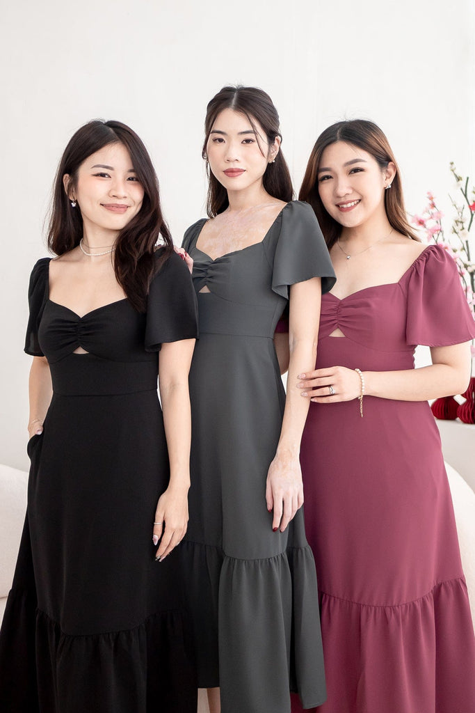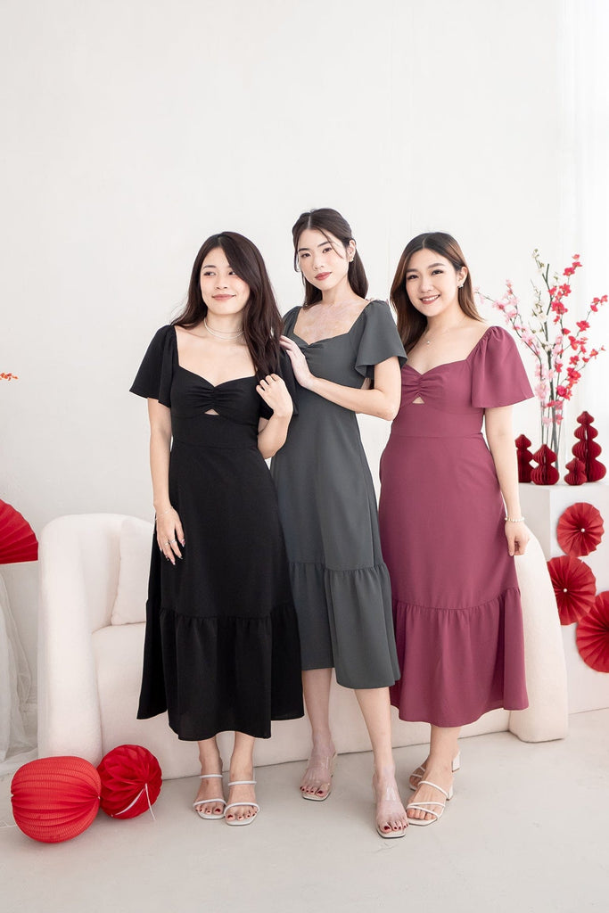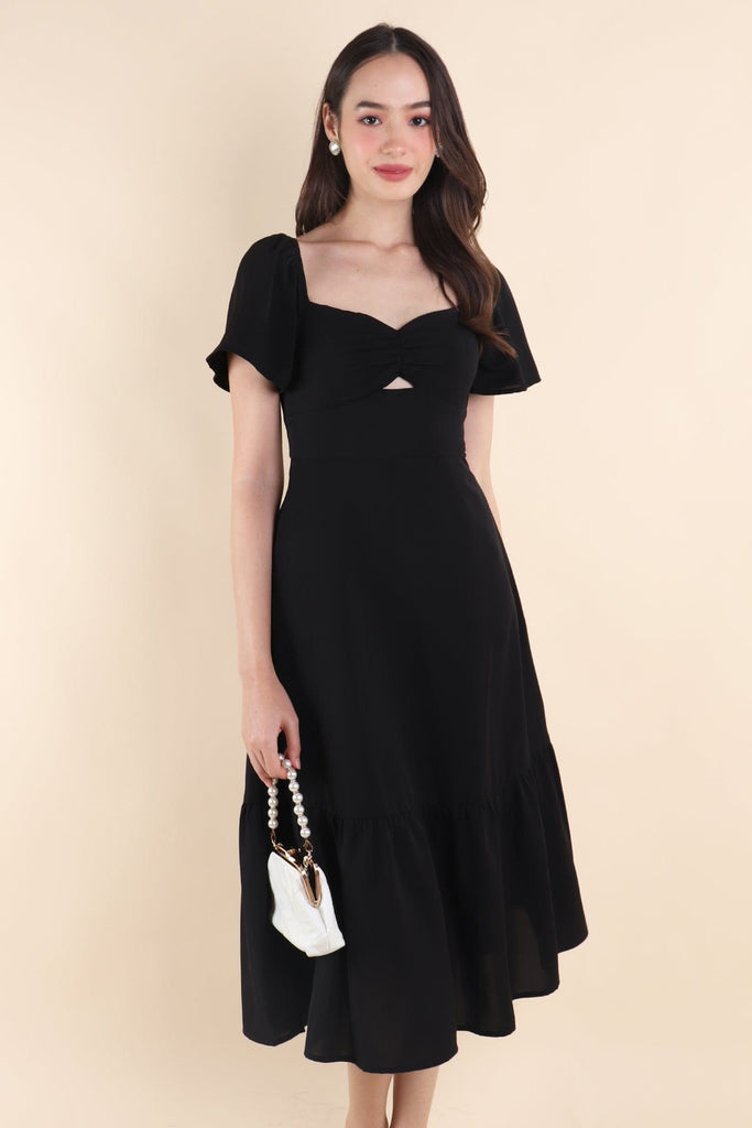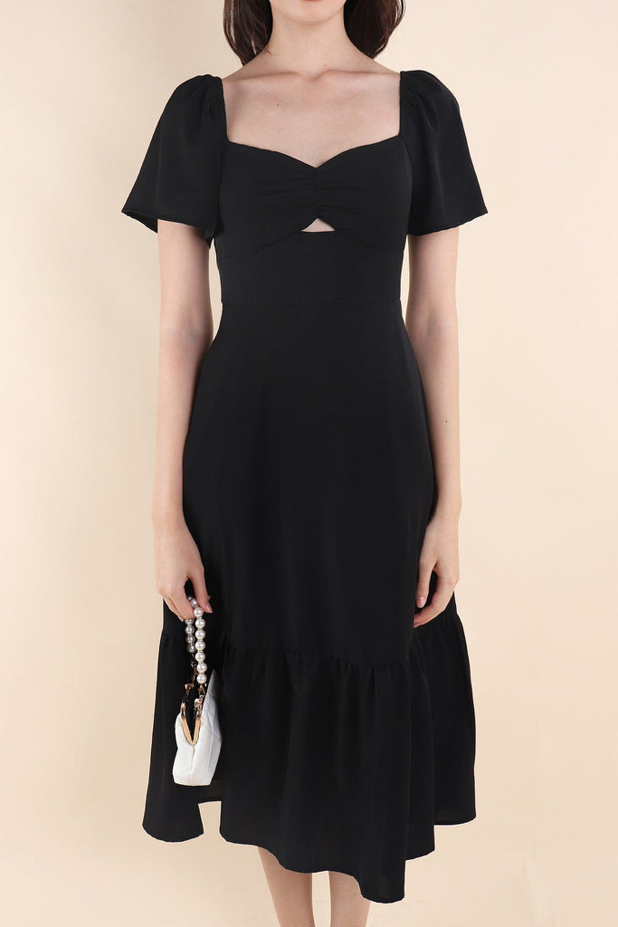 NATALY CUT-OUT MIDAXI DRESS IN BLACK