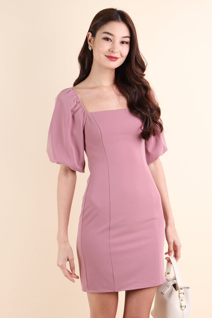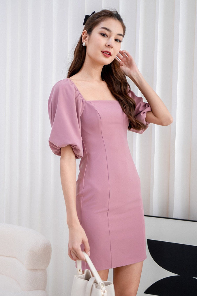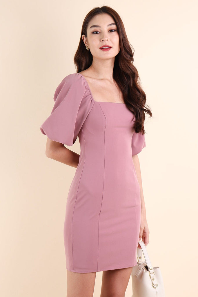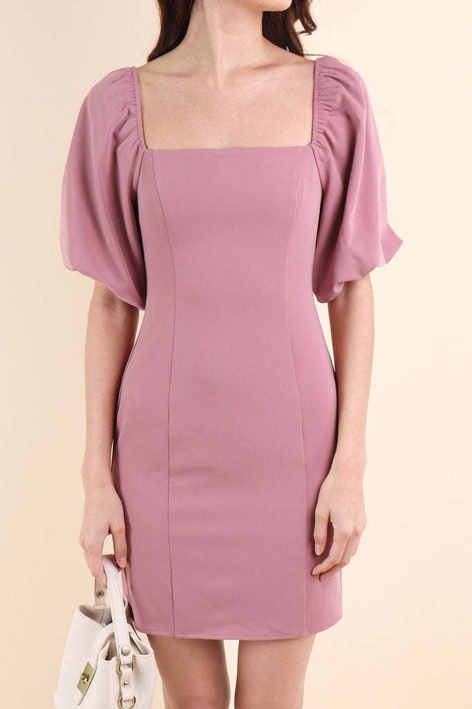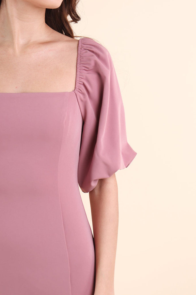NATTY PUFF SLEEVE WORK DRESS IN ROSE MAUVE