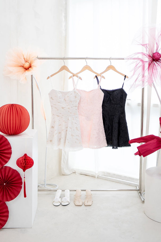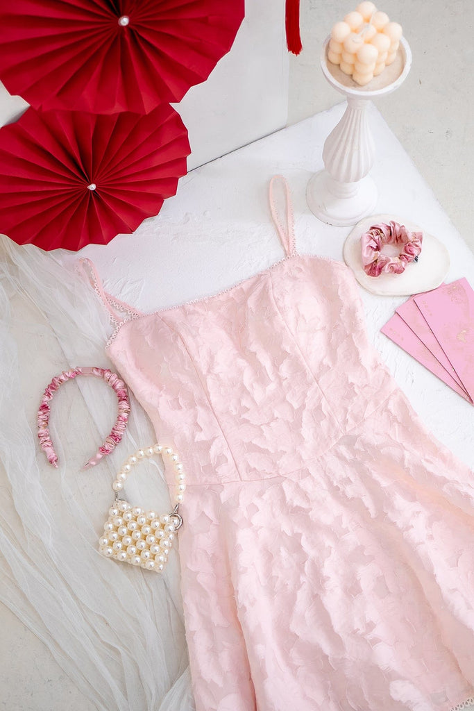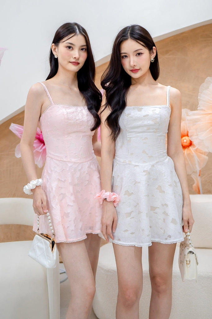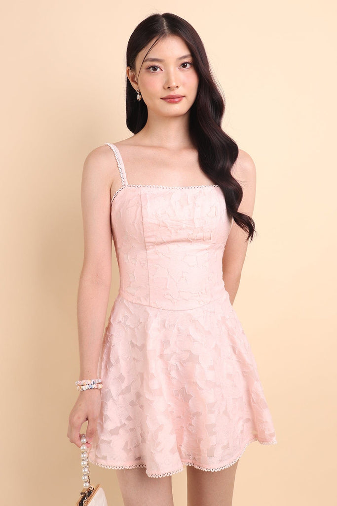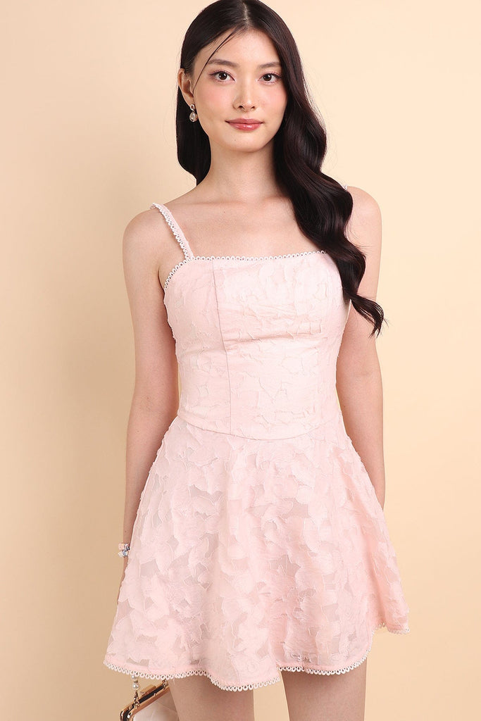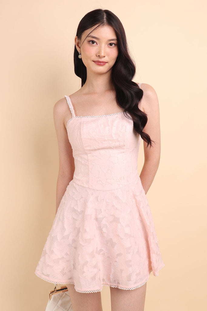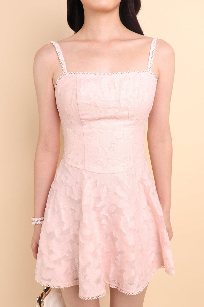 NEW EMPIRE EMBOSSED LACE DRESS IN PINK