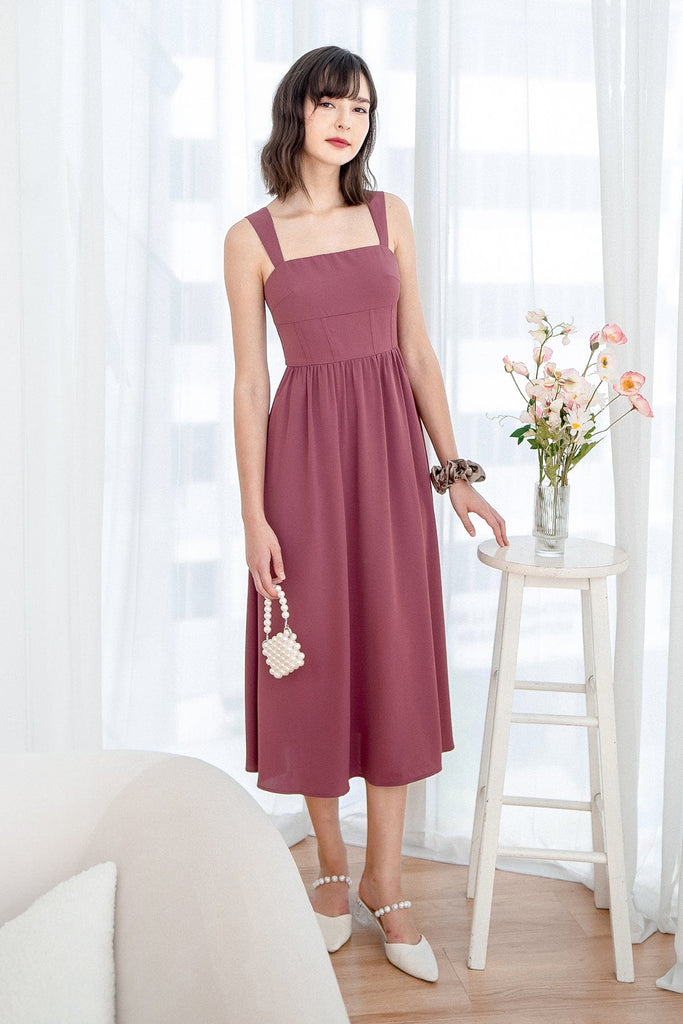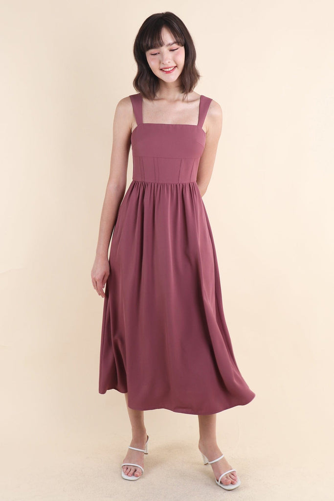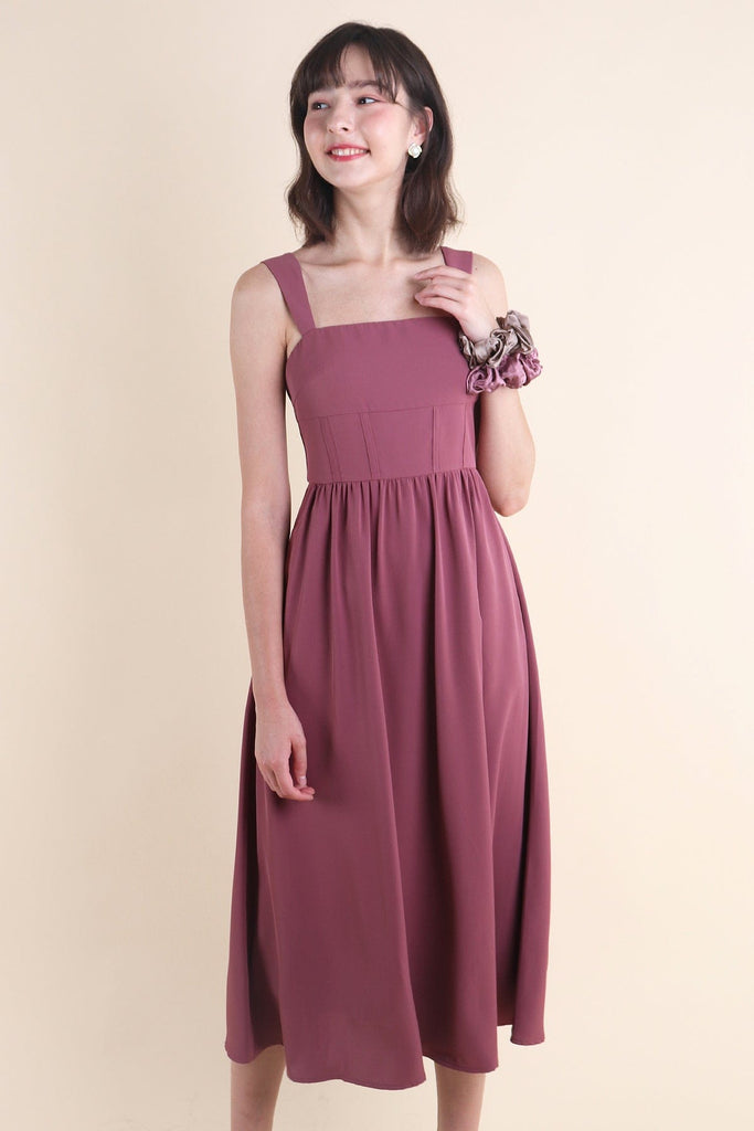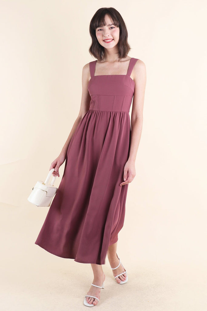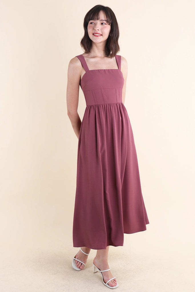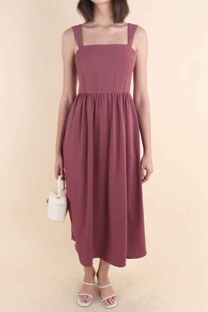 OASIS BUSTIER DRESS IN MAUVE BRICK